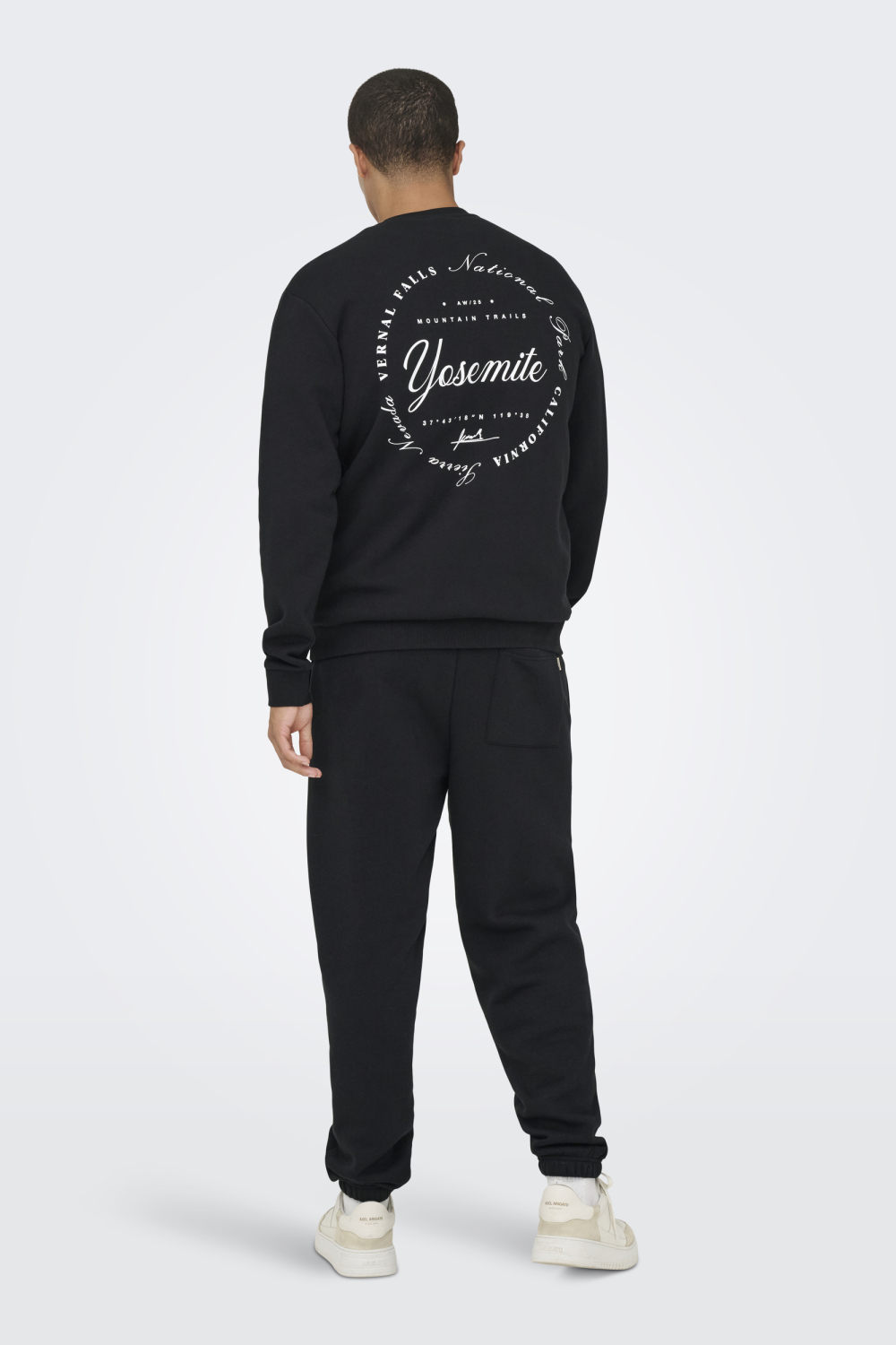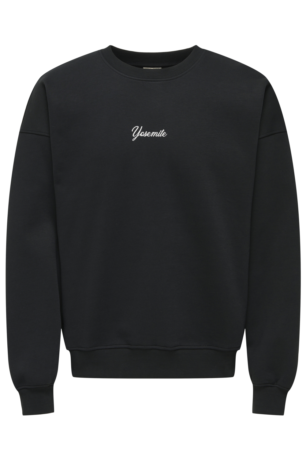 Deze zwarte sweater van Only & Sons is een casual must-have voor jouw wintergarderobe. De sweater heeft een ronde hals en is gemaakt van een zachte mix van 65% katoen en 35% polyester, wat zorgt voor draagcomfort en warmte. De voorzijde is subtiel gesierd met de tekst "Yosemite", terwijl de achterkant een grotere tekstprint heeft die verwijst naar het iconische nationale park. Dankzij de regular fit en de normale lengte is de trui gemakkelijk te combineren met je favoriete jeans of een comfortabele joggingbroek.