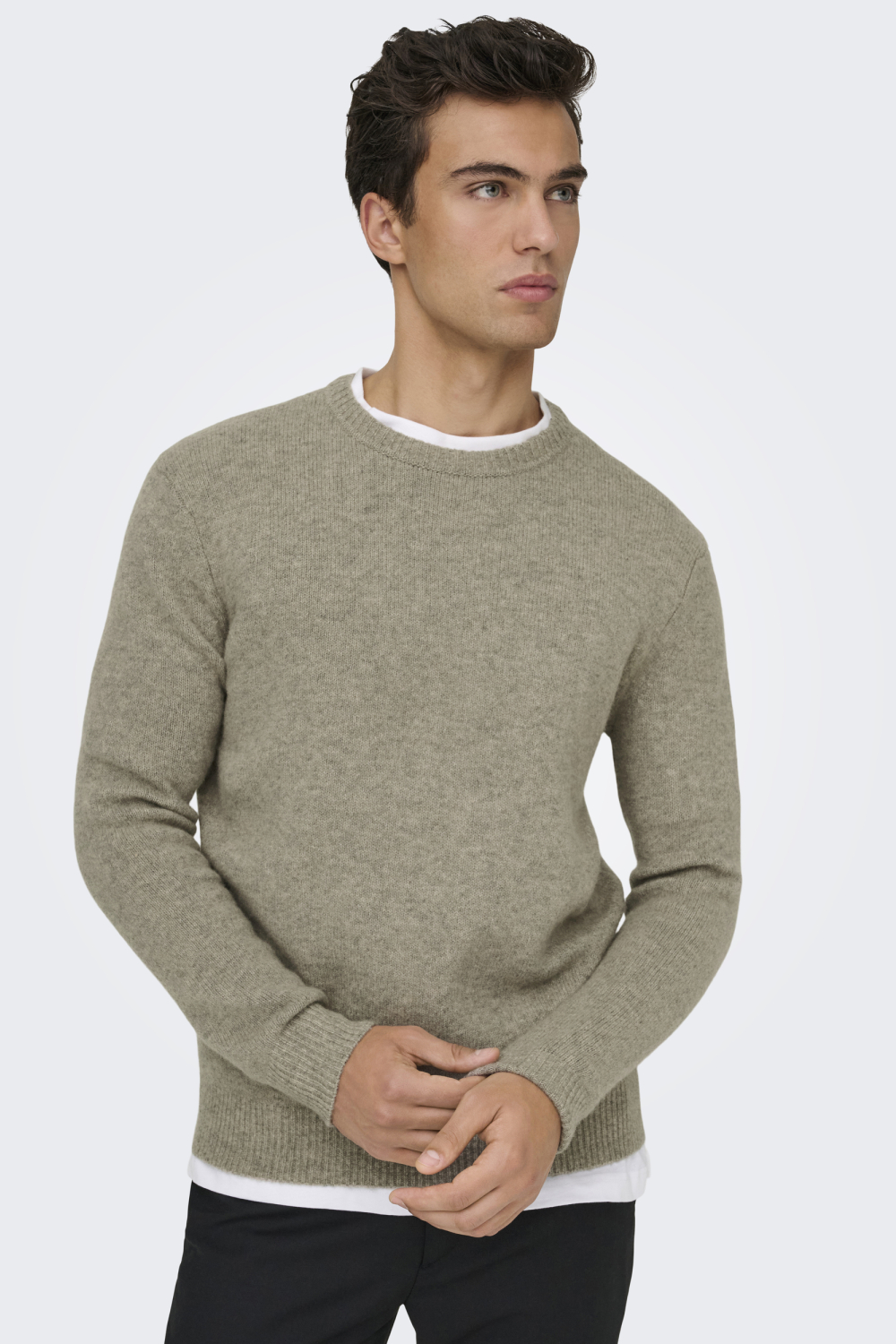• Only & Sons taupe heren trui | Model vooraanzicht