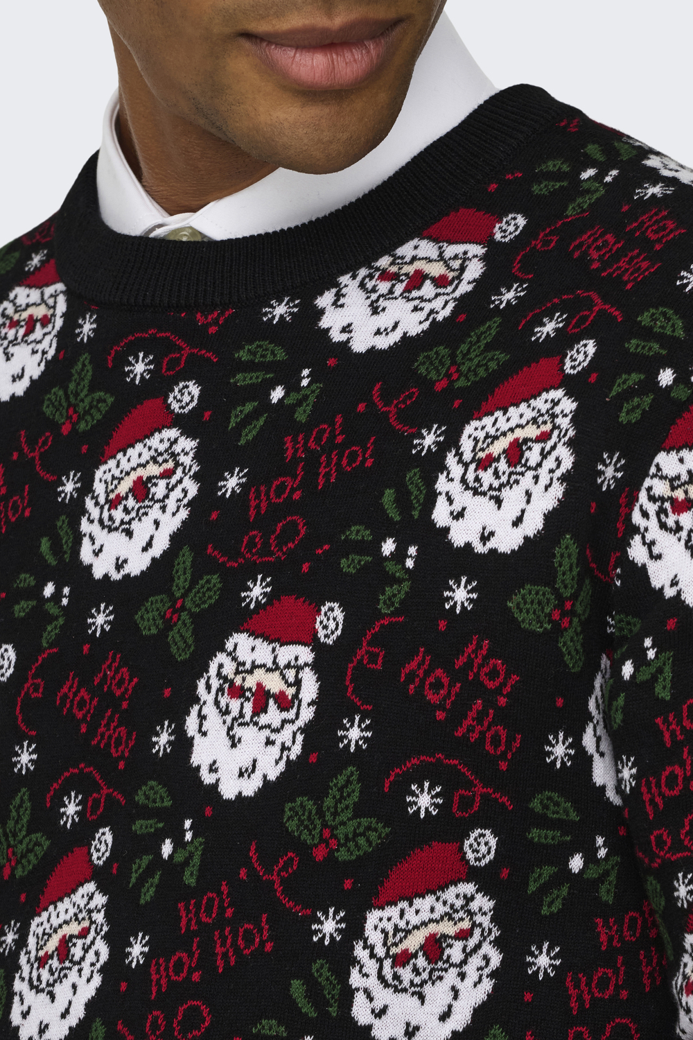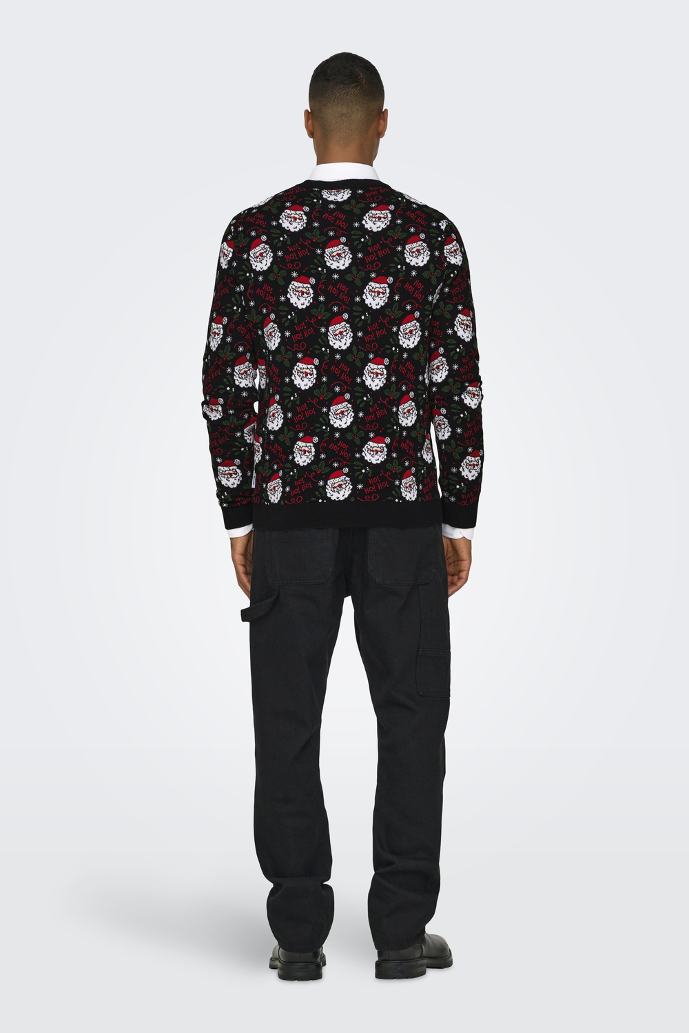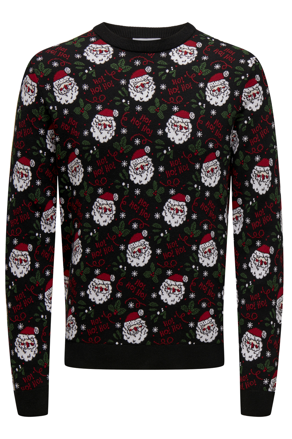 Mooie gebreide kersttrui van Only & Sons. Dit model heeft lange mouwen en een ronde hals.