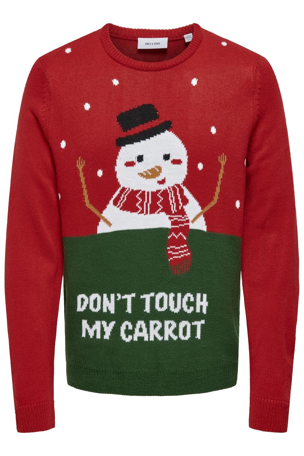 Mooie gebreide kersttrui van Only & Sons. Dit model heeft lange mouwen en een ronde hals.