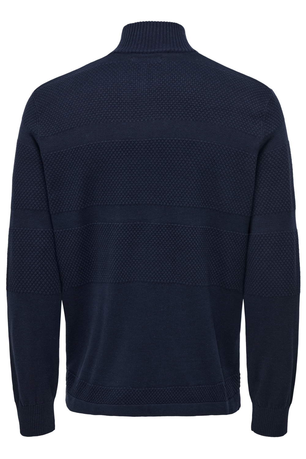 Dit navy blazer vest van Only & Sons is een veelzijdige aanwinst in je garderobe. Het combineert een stijlvol knitwear uiterlijk met comfort dankzij de hoogwaardige mix van 50% acryl en 50% katoen. De regular fit past verschillende lichaamstypes en de structuur van de stof geeft een eigentijdse twist aan het klassieke ontwerp. Voorzien van een praktische ritssluiting en een high neck, biedt dit vest zowel warmte als een modieuze look.