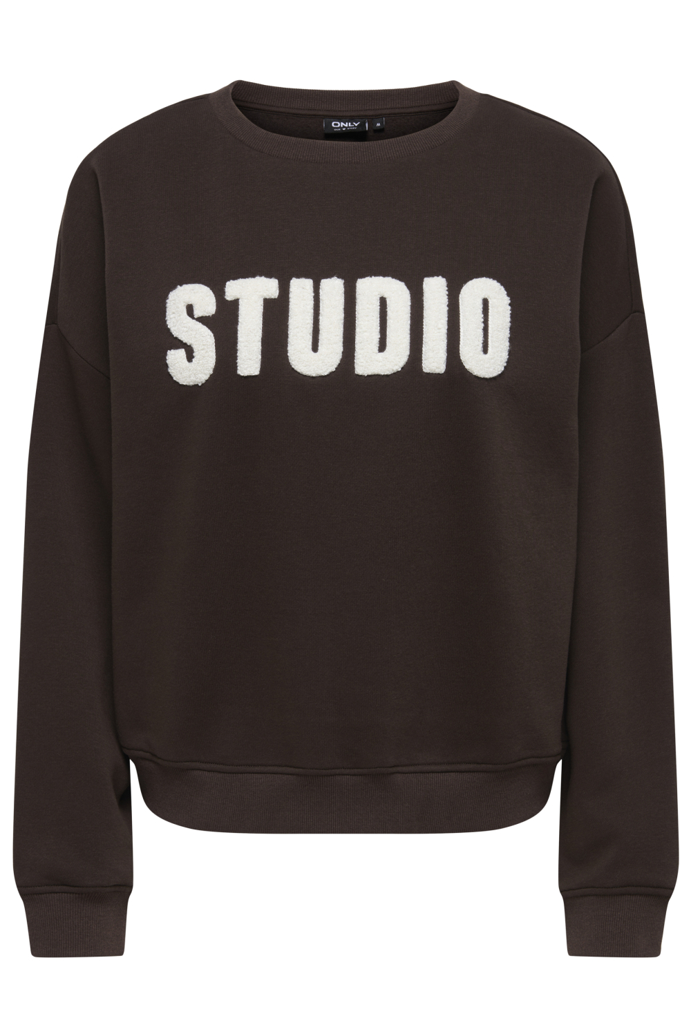 Deze Only sweater is een casual must-have voor jouw dagelijkse garderobe. Gemaakt van 60% katoen en 40% gerecycled polyester, biedt het niet alleen comfort, maar draagt het ook bij aan duurzaamheid. De sweater heeft een opvallende donkerbruine kleur met contrasterende witte tekst "STUDIO" op de voorkant, wat een moderne touch geeft. Met zijn ronde hals en lange mouwen is het een veelzijdig stuk dat je gemakkelijk kunt dragen.