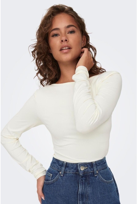 Dit Only T-shirt met lange mouwen in de kleur "cloud dancer" is een subtiele en veelzijdige toevoeging aan je garderobe. Dit dames T-shirt valt mooi in een slim fit pasvorm en is gemaakt van een lichte mix van 94% polyamide en 6% elastan, wat zorgt voor een comfortabele stretch. De vierkante hals voegt een uniek detail toe aan het eenvoudige design, terwijl de normale lengte en lange mouwen zorgen voor een nette uitstraling. Of je nu een dag op kantoor hebt of een informele bijeenkomst, dit T-shirt biedt je een stijlvolle look zonder overdadig te zijn. Met zijn casual stijl is dit T-shirt gemakkelijk te combineren met verschillende kledingstukken. Draag het onder een blazer voor een zakelijkere uitstraling, of combineer het met een denim rok zoals getoond in de afbeeldingen voor een meer ontspannen, dagelijkse look. Dankzij de effen kleur is het een perfecte basisstuk dat je keer op keer kunt dragen. Het is een ideale keuze voor elke gelegenheid, waarbij je zowel comfort als stijl wil uitstralen.