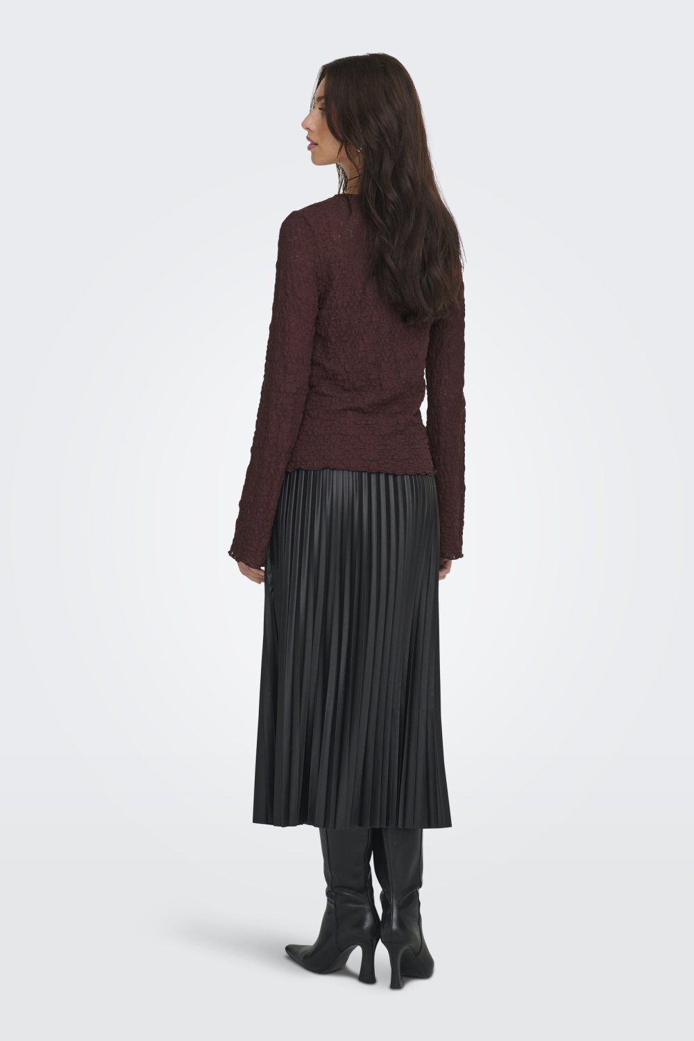 Dit casual kantpatroon T-shirt van Only in de kleur Decadent Chocolate voegt een elegante touch toe aan jouw wintergarderobe. De regular fit staat garant voor comfort, terwijl de fijne blend van 60% katoen, 35% polyamide en 5% elastaan zorgt voor een subtiele stretch. De ronde hals en lange mouwen maken het tot een veelzijdig kledingstuk dat je zowel thuis als onderweg stijlvol houdt. De verfijnde kantstructuur geeft dit T-shirt een unieke uitstraling, perfect voor zowel dagelijkse uitstapjes als gezellige avonden. Door de normale lengte is het eenvoudig te combineren met een high-waist rok of een strakke jeans, afhankelijk van de gelegenheid. Of je nu een knusse avond met vrienden plant of een wandeling maakt in winterse sferen, dit shirt biedt een stijlvolle en comfortabele keuze voor elke situatie.