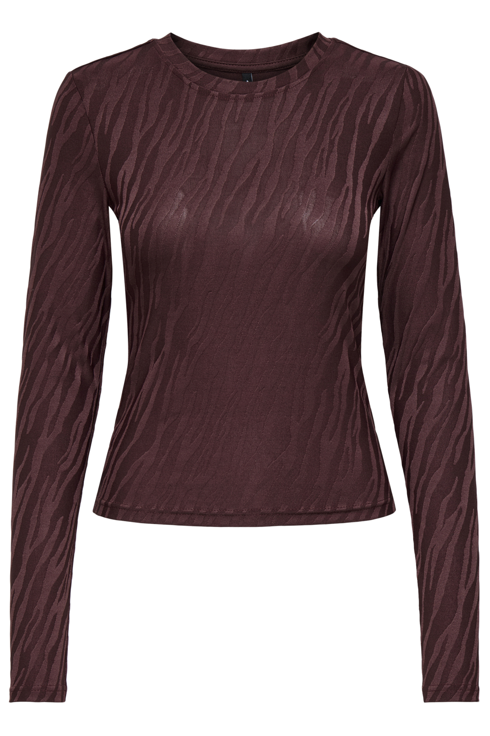 Dit Only T-shirt voor dames is een stijlvolle en veelzijdige toevoeging aan je wintergarderobe. Het shirt heeft een rijke bordeauxrode kleur met een subtiele structuur, wat zorgt voor een unieke en modieuze uitstraling. De ronde hals en lange mouwen maken het geschikt voor koude dagen, terwijl het comfort van de regular fit je alle bewegingsvrijheid biedt die je nodig hebt. Gemaakt van een mix van 95% polyester en 5% elastaan, voelt het materiaal zacht aan op de huid en biedt het een lichte stretch voor een perfecte pasvorm.