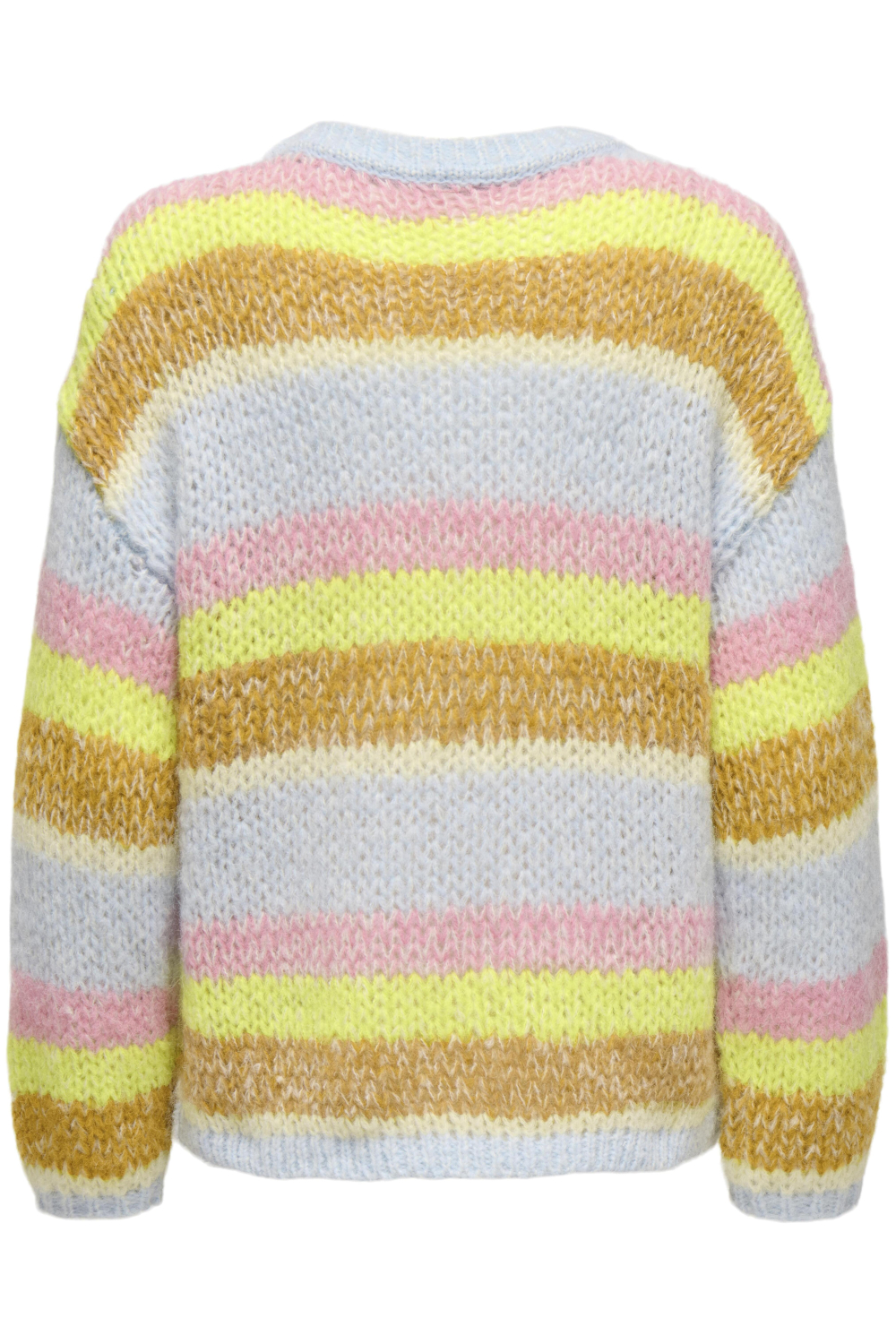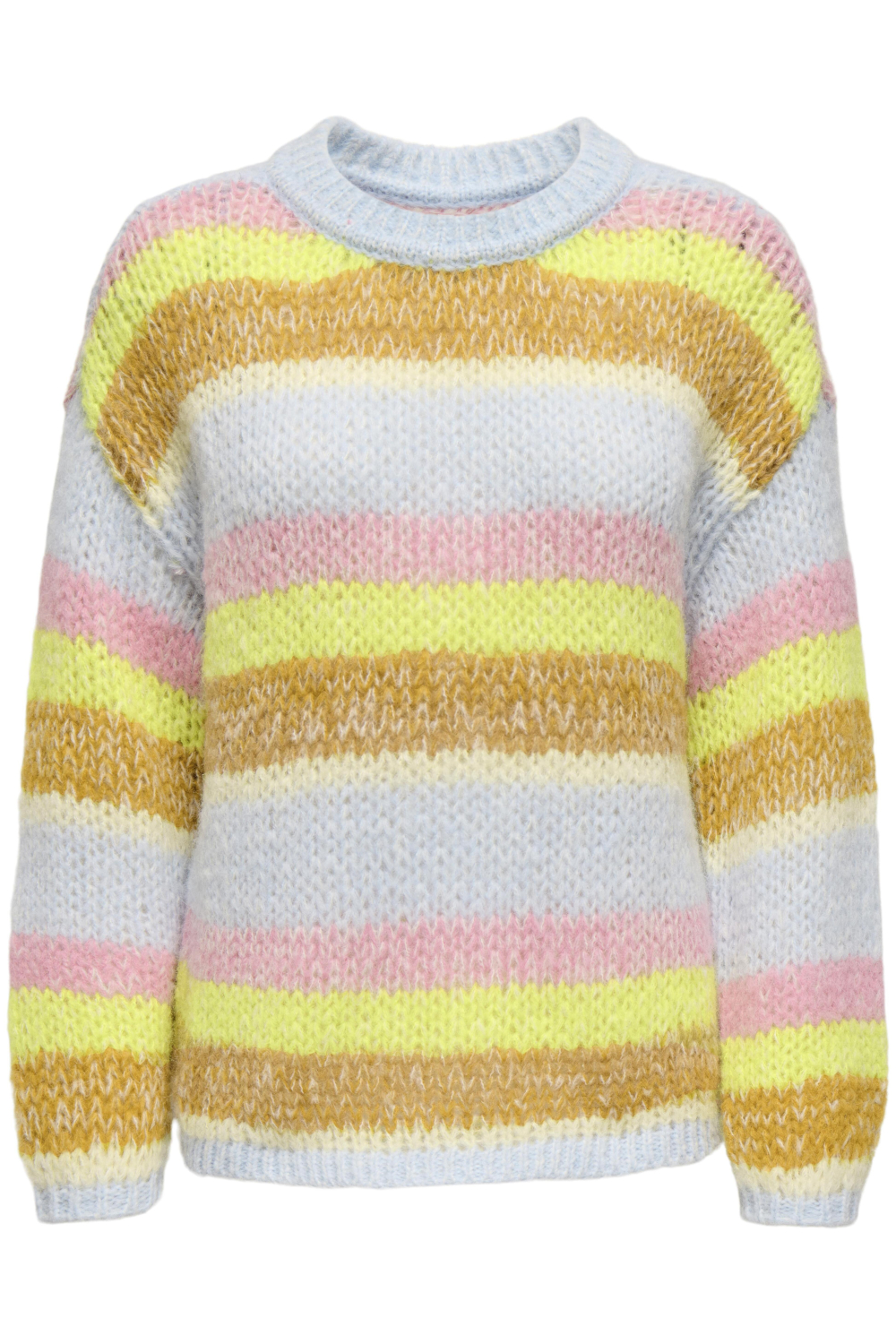Deze vrolijke trui van Only is een kleurrijke toevoeging aan je wintergarderobe. Gemaakt van 57% gerecycled polyester en 43% polyester, biedt deze knitwear niet alleen comfort, maar ook duurzaamheid. De regular fit en lange mouwen zorgen samen met de ronde hals voor een relaxte en veelzijdige look. De speelse strepen in pastelkleuren voegen een fris en modieus accent toe, waardoor je opvalt in elke setting.