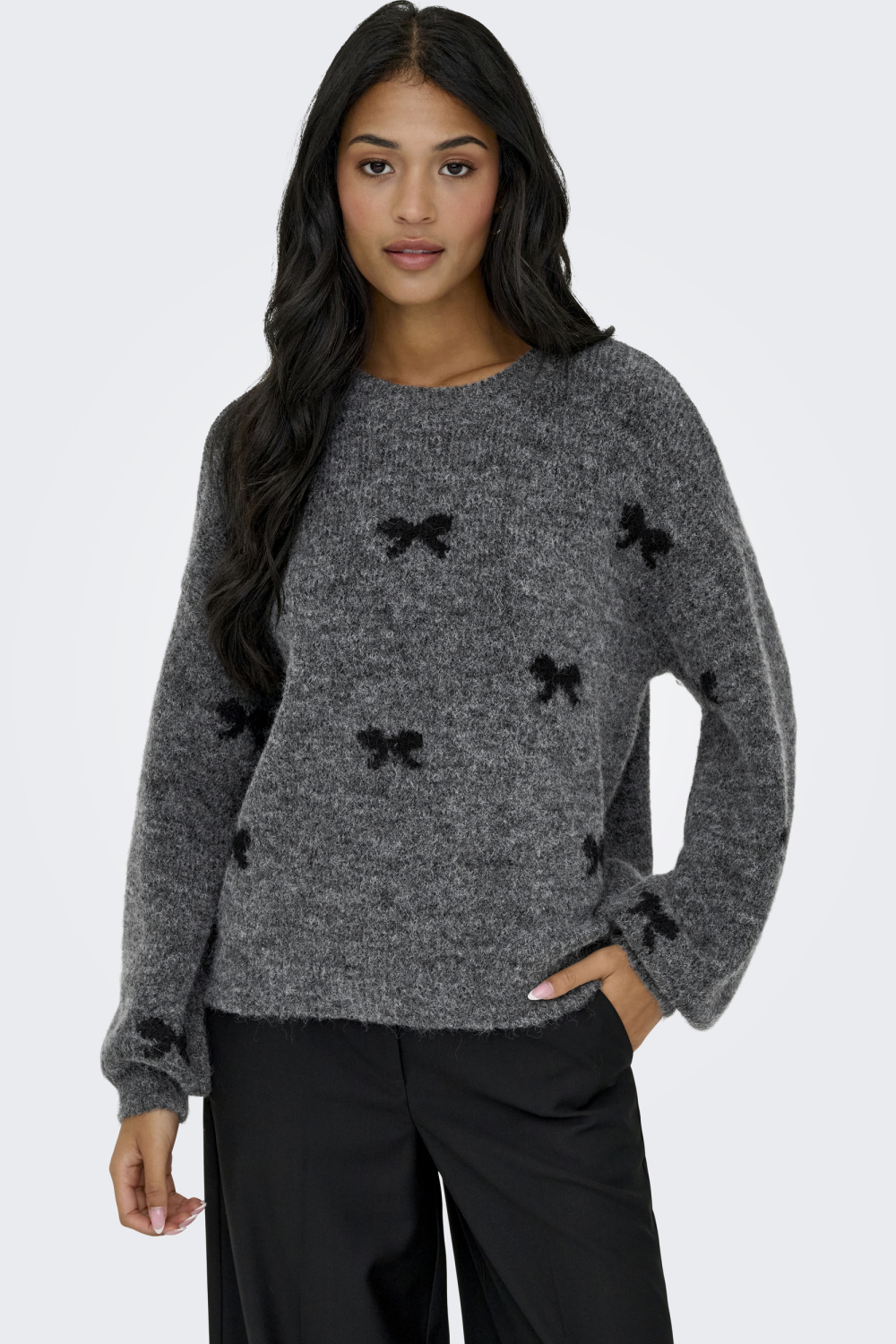 Deze gemêleerde trui van Only is een perfecte aanvulling op je wintergarderobe. Met zijn ronde hals en lange mouwen biedt de trui een comfortabele regular fit, ideaal voor dagelijks gebruik. Het subtiele patroon van gebreide strikjes voegt een speels detail toe aan het grijze ontwerp, terwijl de zachte knitwear-stof voor een warme en aangename draagervaring zorgt. Of je nu een wandeling maakt of ontspannen thuis bent, deze trui past bij elke informele setting. De normale lengte maakt het makkelijk om te combineren met een trendy broek of een casual jeans. Dankzij zijn tijdloze uitstraling en comfortabele pasvorm is deze trui geschikt voor de koudere maanden en biedt hij een stijlvolle look voor diverse gelegenheden.