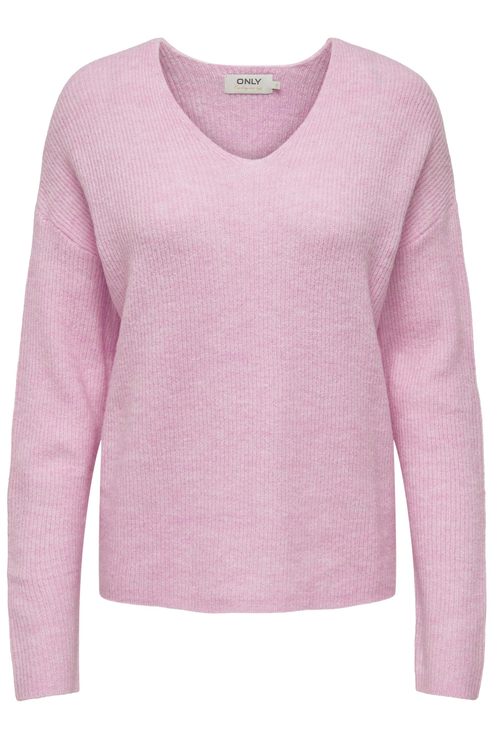 Deze gemêleerde trui van Only in de kleur Pink Lady is een elegante toevoeging aan je garderobe. Met een regular fit en een tijdloze V-hals, biedt deze trui zowel stijl als comfort. De combinatie van acryl, polyester en elastan zorgt voor een lichte stretch, waardoor hij zich perfect naar je lichaam voegt. De lange mouwen maken het een ideale keuze voor de koelere seizoenen, terwijl de normale lengte ervoor zorgt dat hij makkelijk combineerbaar is met je favoriete jeans of rok. Dankzij het subtiele gemêleerde patroon biedt deze trui net dat beetje extra flair aan je outfit. Perfect voor zowel een casual dag op kantoor als een gezellig avondje uit. De rustige en zachte tinten maken dat deze trui zich moeiteloos laat matchen met verschillende stijlen en kleuren. Een veelzijdig stuk dat je in diverse situaties kunt dragen, van een ontspannen middag in de stad tot een informele bijeenkomst met vrienden. Voeg deze Only trui toe aan je collectie voor een zorgeloze en modieuze look.