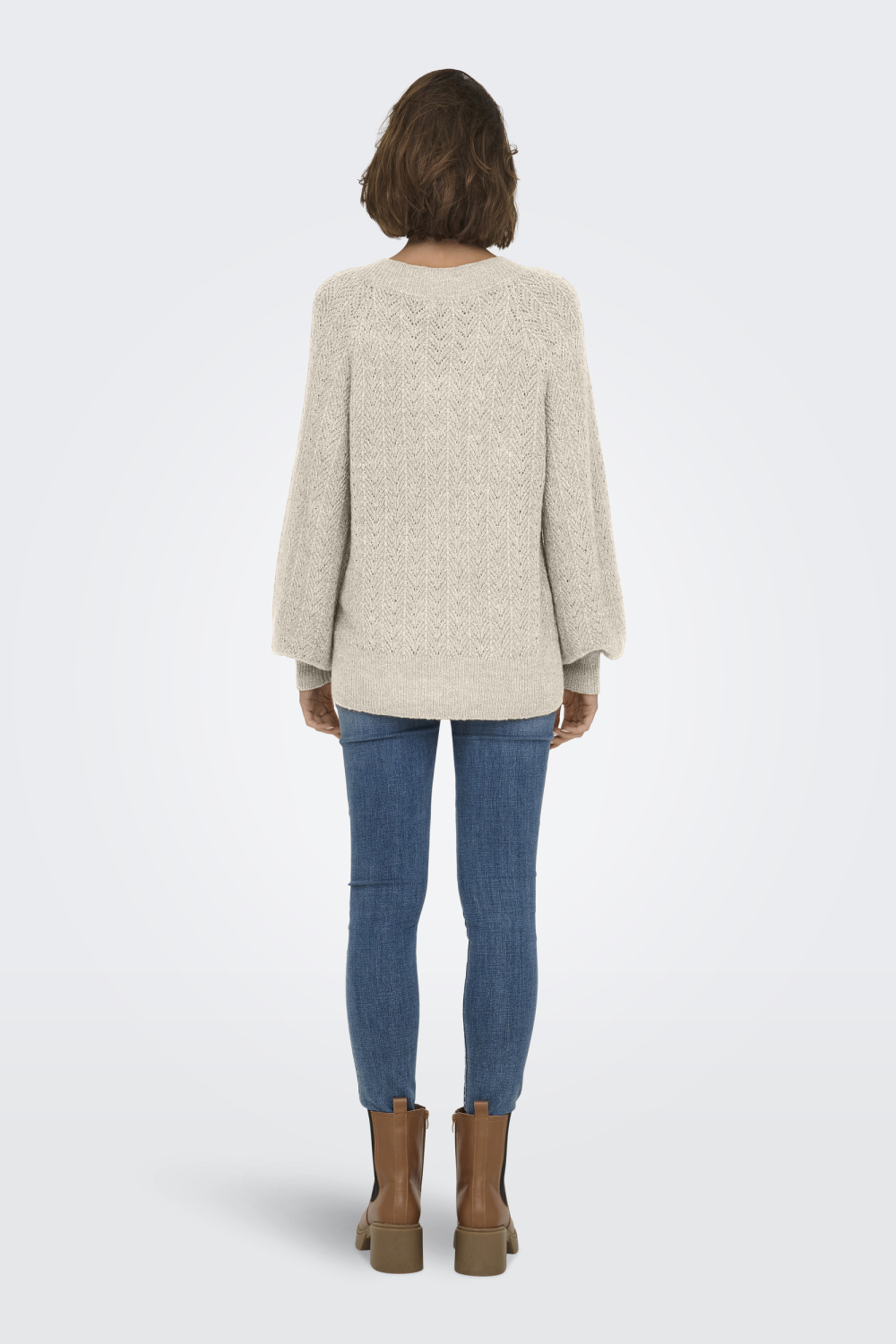Deze stijlvolle knitwear trui van Only is een perfecte keuze voor de koude wintermaanden. De trui heeft een elegante ronde hals en valt in een flatterende regular fit, waardoor hij comfortabel en modieus om je heen zit. De zachte neutralen tonen worden verrijkt met een subtiele glitterpatroon, dat net genoeg glans toevoegt zonder te overweldigen. Dankzij de lange mouwen en de normale lengte houd je comfortabel de kou op afstand.