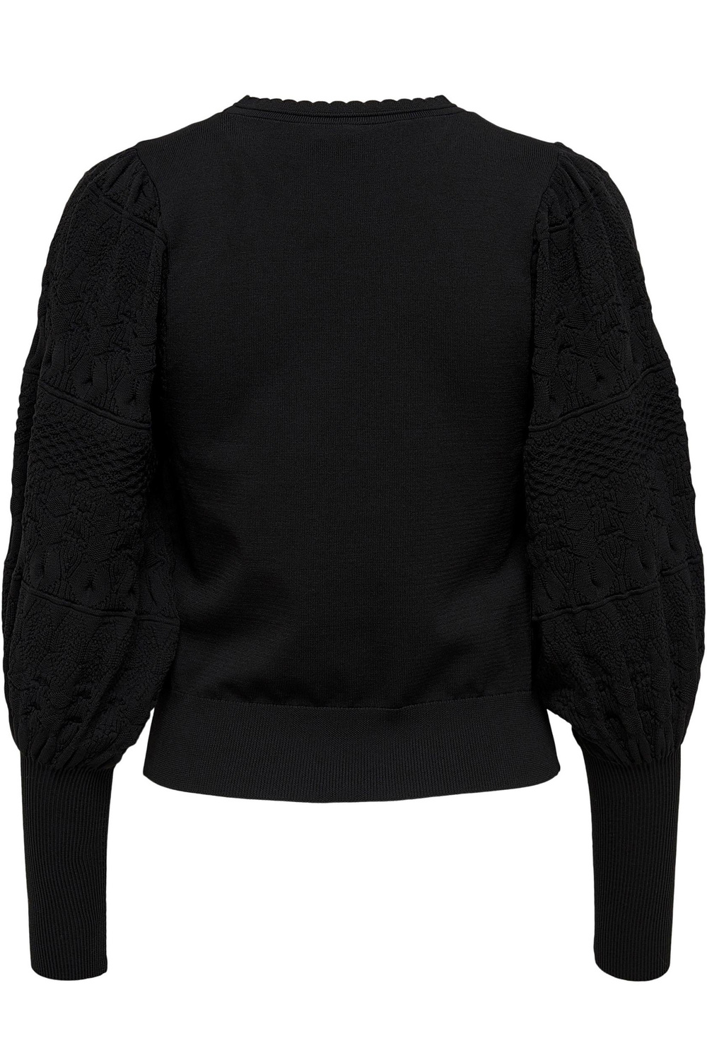 Deze zwarte knitwear trui van Only is een perfecte toevoeging aan je garderobe. Met een elegante ronde hals en een regular pasvorm biedt deze trui niet alleen comfort, maar ook een modieuze uitstraling. De opvallende lange mouwen zijn voorzien van een prachtig gebreid patroon dat diepte en textuur toevoegt aan het klassieke design. Gemaakt van 100% polyester voelt de stof zacht aan op je huid en draagt deze licht, waardoor de trui ideaal is voor dagelijks gebruik. De trui kan gemakkelijk gecombineerd worden met zowel casual jeans als nette broeken, waardoor je veelzijdigheid hebt voor verschillende gelegenheden. Of je nu naar een informele lunch gaat of een koude dag op het kantoor doorbrengt, deze trui zorgt voor een stijlvolle en comfortabele look. De normale lengte en de subtiele details maken het een tijdloos stuk dat niet in je kledingkast mag ontbreken. De zwarte kleur zorgt ervoor dat je het gemakkelijk kunt matchen met diverse stijlen en accessoires.