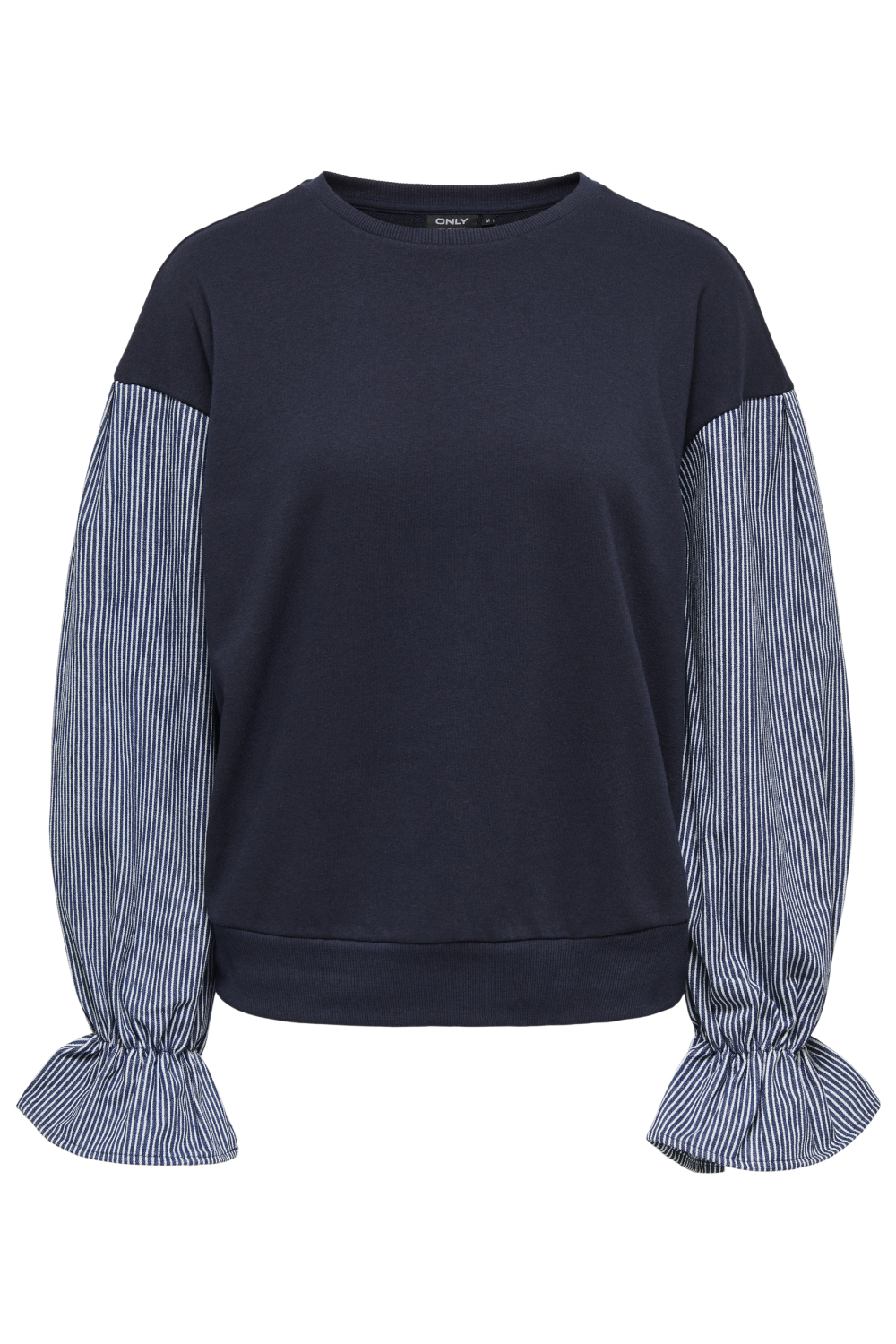 Deze casual trui van Only biedt jou de perfecte balans tussen comfort en stijl. Met een regular fit en een samenstelling van 60% katoen en 40% polyester, zit de trui heerlijk bij elke gelegenheid. De ronde hals en het streeppatroon op de lange mouwen geven een speelse twist aan de navy kleur, waardoor het een veelzijdige keuze is voor jouw herfstgarderobe.
