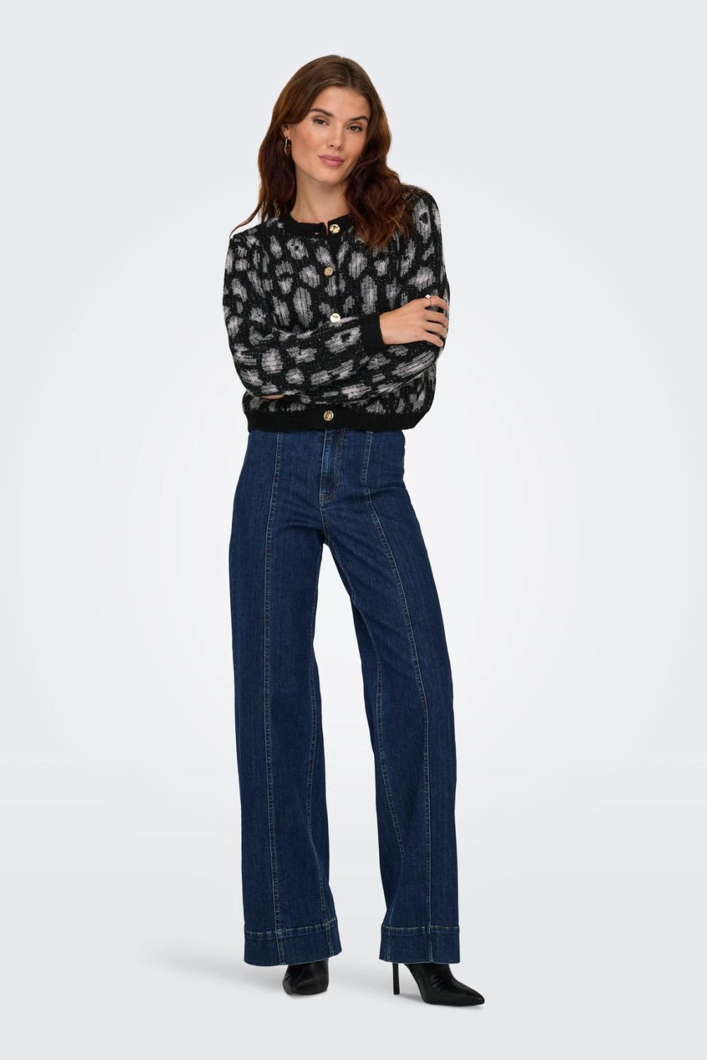 Deze Only dames knitwear vest in Black/Light Grey is een stijlvol item voor je herfstgarderobe. Met een regular pasvorm en een kortere lengte, biedt dit vest zowel comfort als een modern silhouet. De lange mouwen maken het ideaal voor koelere dagen. De ronde hals en knoopsluiting voegen een klassieke touch toe, terwijl de opvallende zwart-grijze structuur patroon een eigentijdse uitstraling geeft. De gouden knopen contrasteren mooi met de donkere basis, wat het vest een luxe tintje geeft. Dit vest is perfect voor verschillende gelegenheden. Combineer het met een donkere jeans voor een casual dagje uit, of draag het over een nette blouse voor een meer formele setting. Het veelzijdige design maakt het eenvoudig om te stijlen met zowel je dagelijkse outfits als meer geklede looks. Of je nu een wandeling door het park maakt of een lunchafspraak hebt, dit vest biedt je de perfecte balans tussen stijl en comfort.