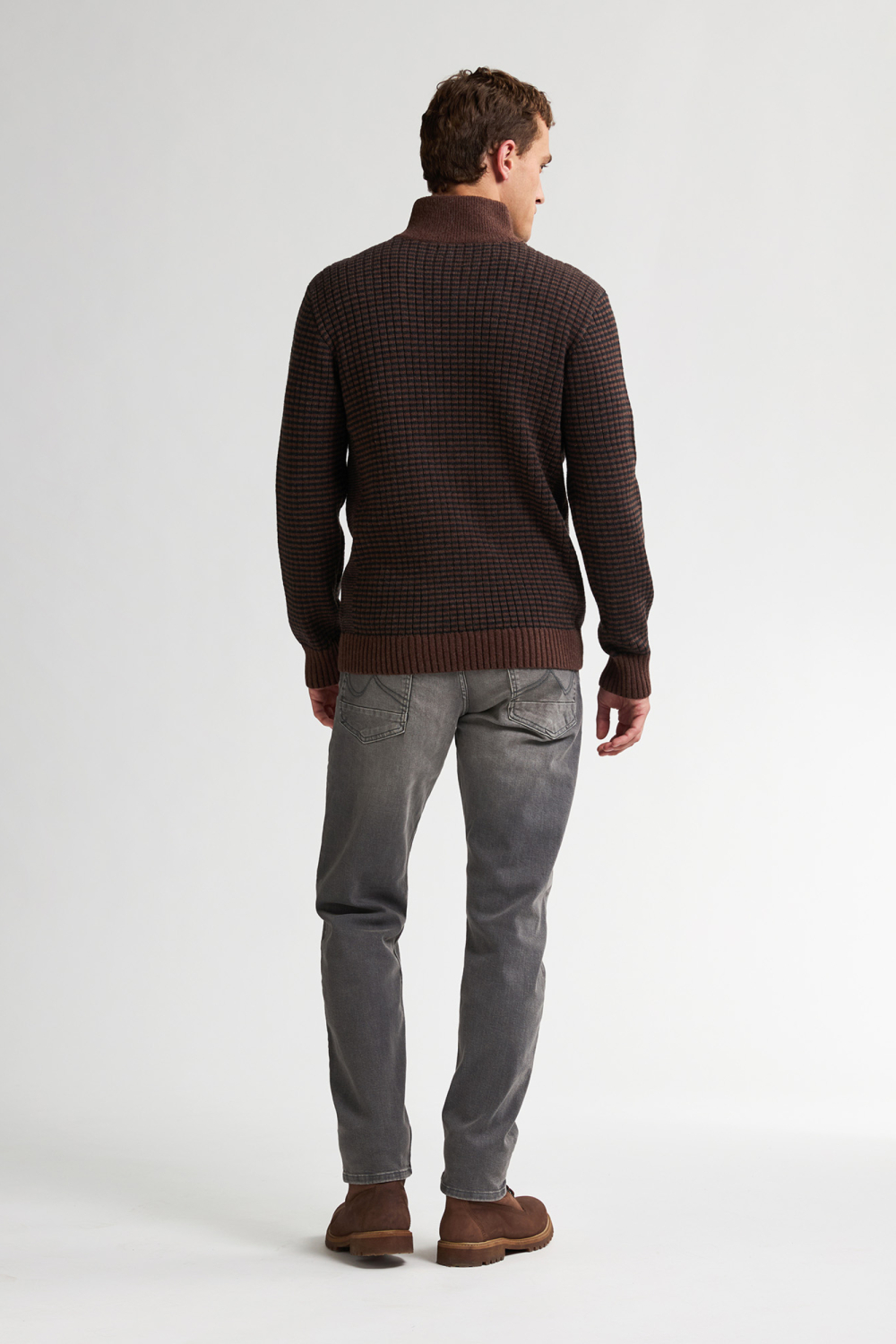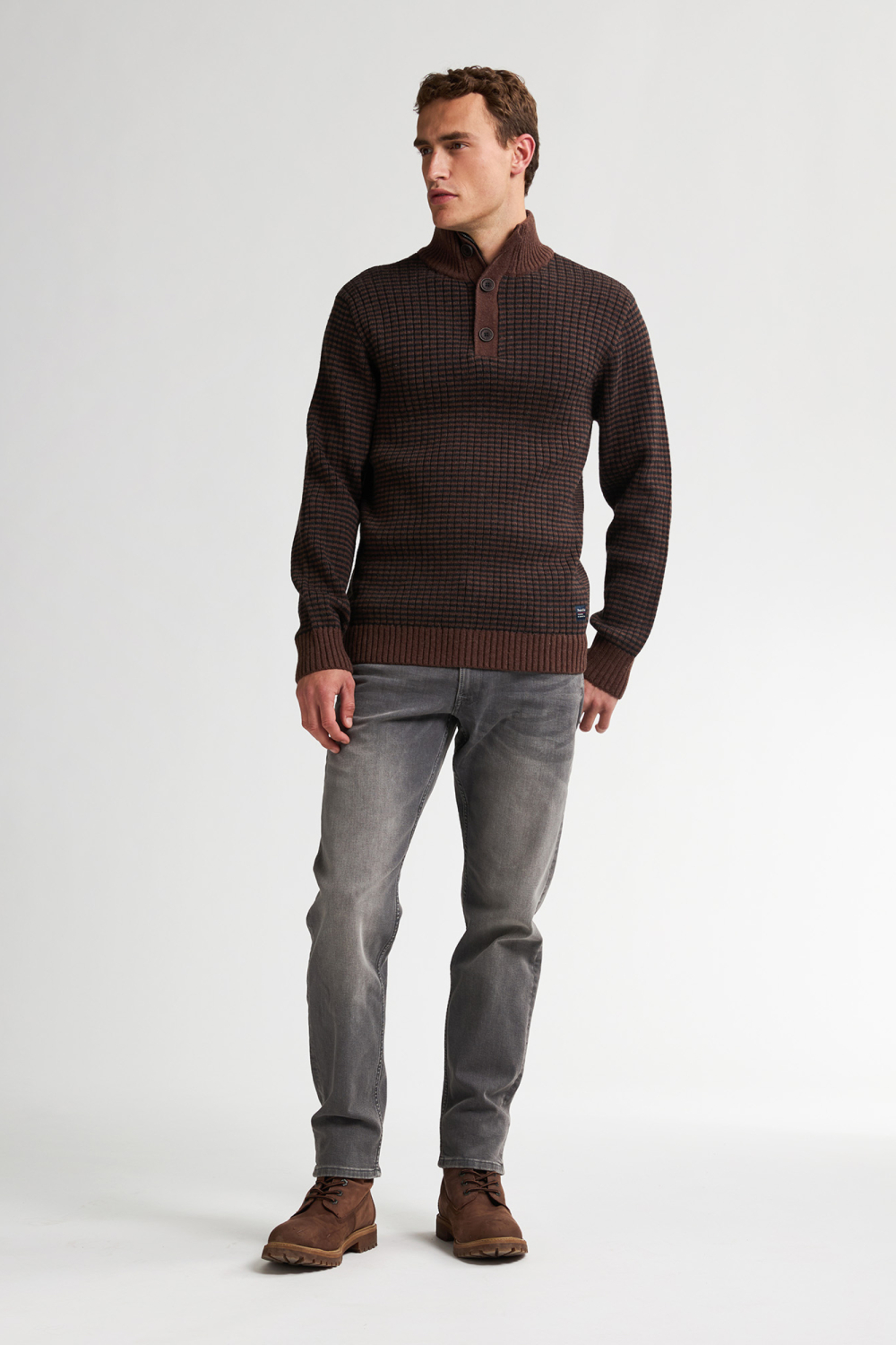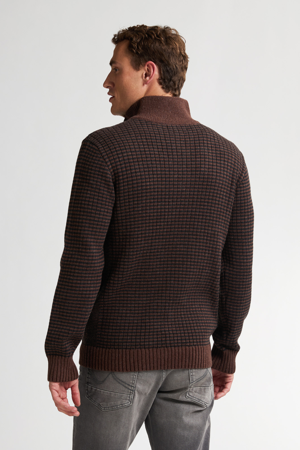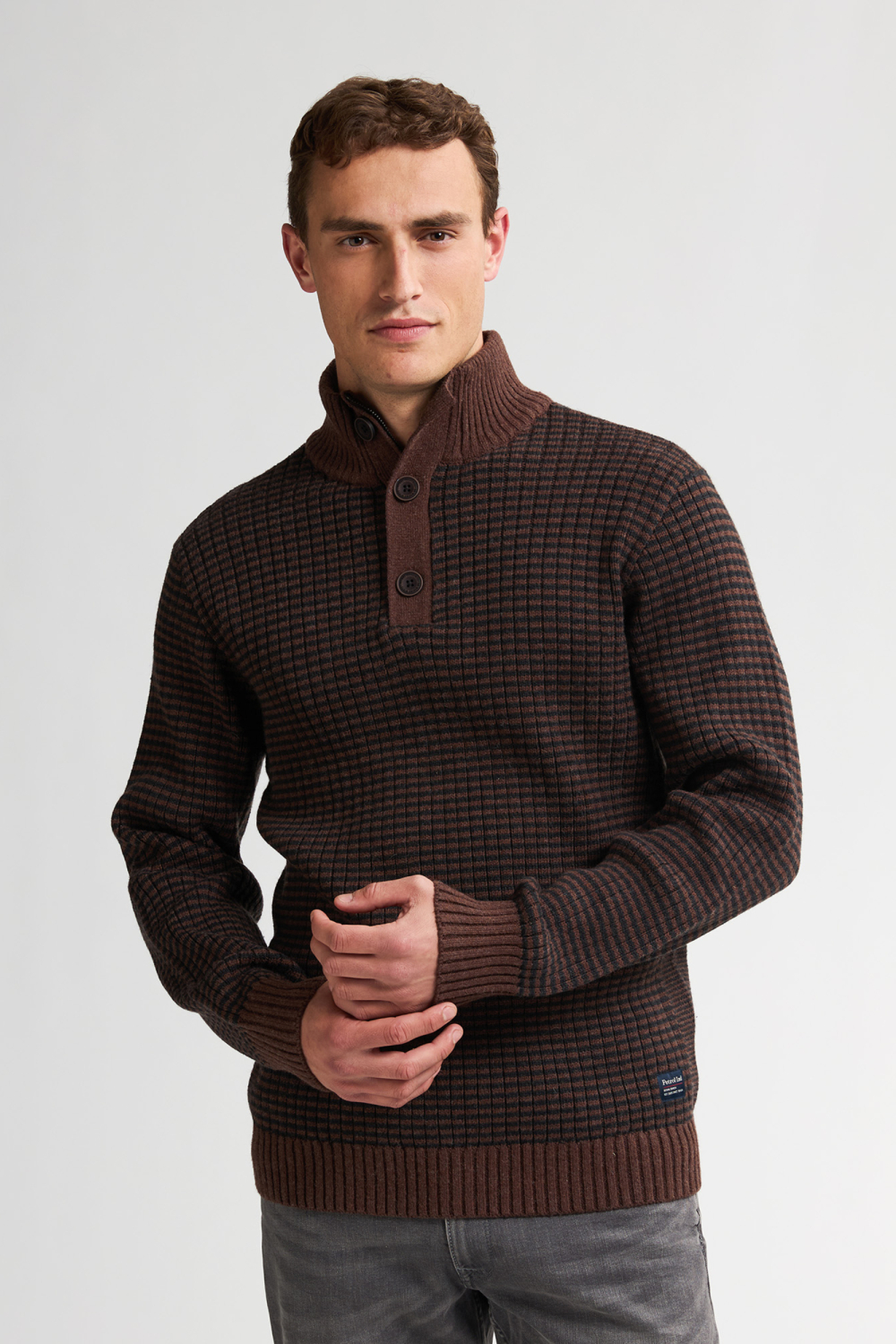 Deze stijlvolle bruine trui van Petrol Industries is een veelzijdige toevoeging aan je wintergarderobe. Met een regular fit pasvorm biedt deze trui zowel comfort als een moderne uitstraling. Het geblokte patroon in een rijke bruine tint zorgt voor een subtiele, maar modieuze look. De high neck met knoop- en ritssluiting voegt niet alleen een geraffineerd detail toe, maar houdt je ook lekker warm tijdens koudere dagen.