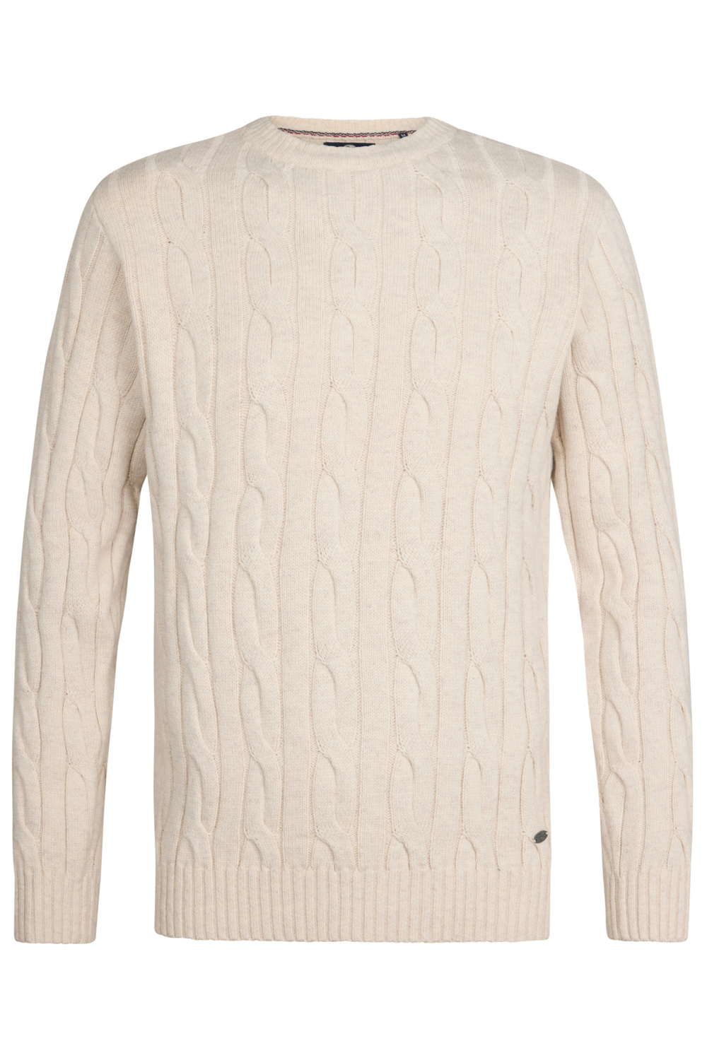 De heerlijk warme trui van Petrol Industries is een ideale toevoeging aan je wintergarderobe. Met zijn stijlvolle kabelpatroon en ronde hals straalt deze herentrui een klassieke en tijdloze charme uit. De trui heeft een regular fit pasvorm, wat zorgt voor een comfortabele en casual look zonder in te boeten op stijl. Deze trui is ontworpen om je warm te houden tijdens koude dagen dankzij de hoogwaardige materialenmix van 60% katoen, 30% nylon en 10% wol.