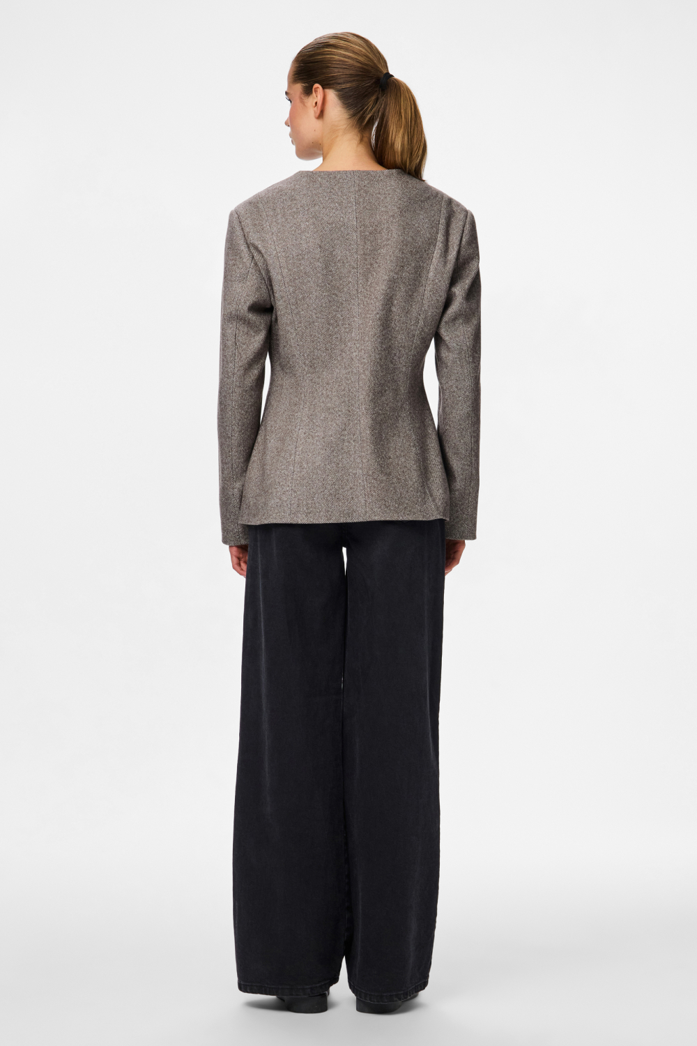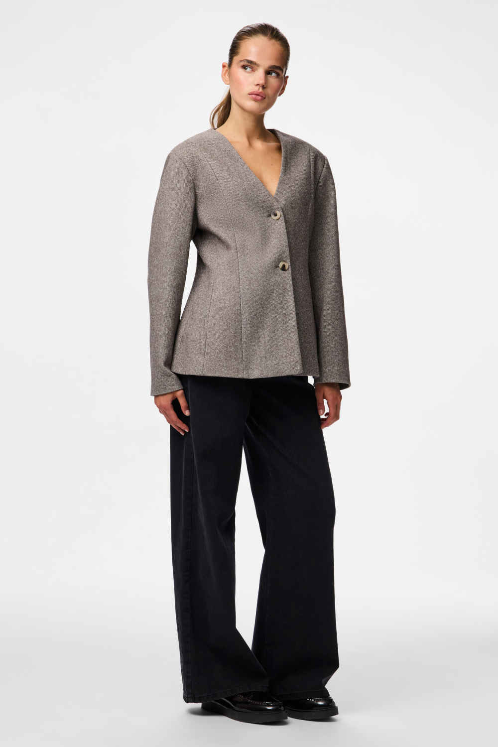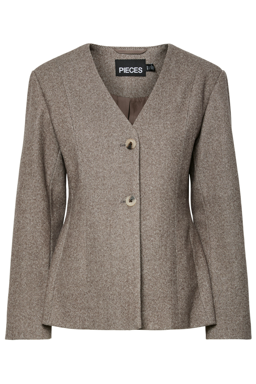 Deze casual blazer van Pieces in de kleur HOT FUDGE/MELANGE is een stijlvolle toevoeging aan je wintergarderobe. De blazer heeft een regular fit, waardoor hij comfortabel draagt en gemakkelijk te combineren is met andere kledingstukken. De streepjesprint geeft het geheel een subtiele textuur, terwijl de V-hals en de knoopsluiting zorgen voor een elegante uitstraling. Gemaakt van 100% polyester, biedt hij zowel zachtheid als duurzaamheid, perfect voor dagelijks gebruik. De normale lengte en lange mouwen maken deze blazer veelzijdig genoeg voor verschillende gelegenheden. Of je hem nu draagt naar kantoor of een informeel uitje, hij past altijd bij de situatie. Combineer hem met een nette broek voor een zakelijke look of kies voor een casual outfit met jeans. Deze Pieces blazer is ontworpen zonder zakken, wat zorgt voor een strakke en gestroomlijnde uitstraling. Met zijn klassieke en tijdloze design is hij een betrouwbare keuze voor elke stijlvolle vrouw.