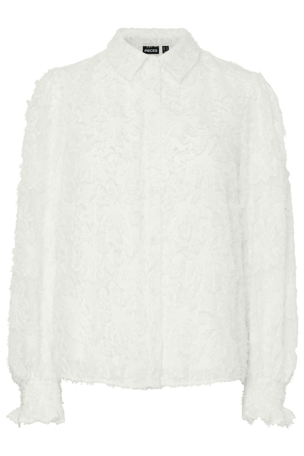 Deze opvallende Pieces damesblouse in de kleur "Cloud Dancer" is een stijlvolle aanvulling voor je wintergarderobe. De blouse heeft een regular fit en is gemaakt van 100% gerecycled polyester, wat zorgt voor een duurzame en milieuvriendelijke keuze. Kenmerkend zijn de lange mouwen en de puntkraag, wat het geheel een elegante uitstraling geeft. Het structuurpatroon geeft de blouse een uniek karakter, dat zowel comfortabel als trendy is voor diverse gelegenheden.