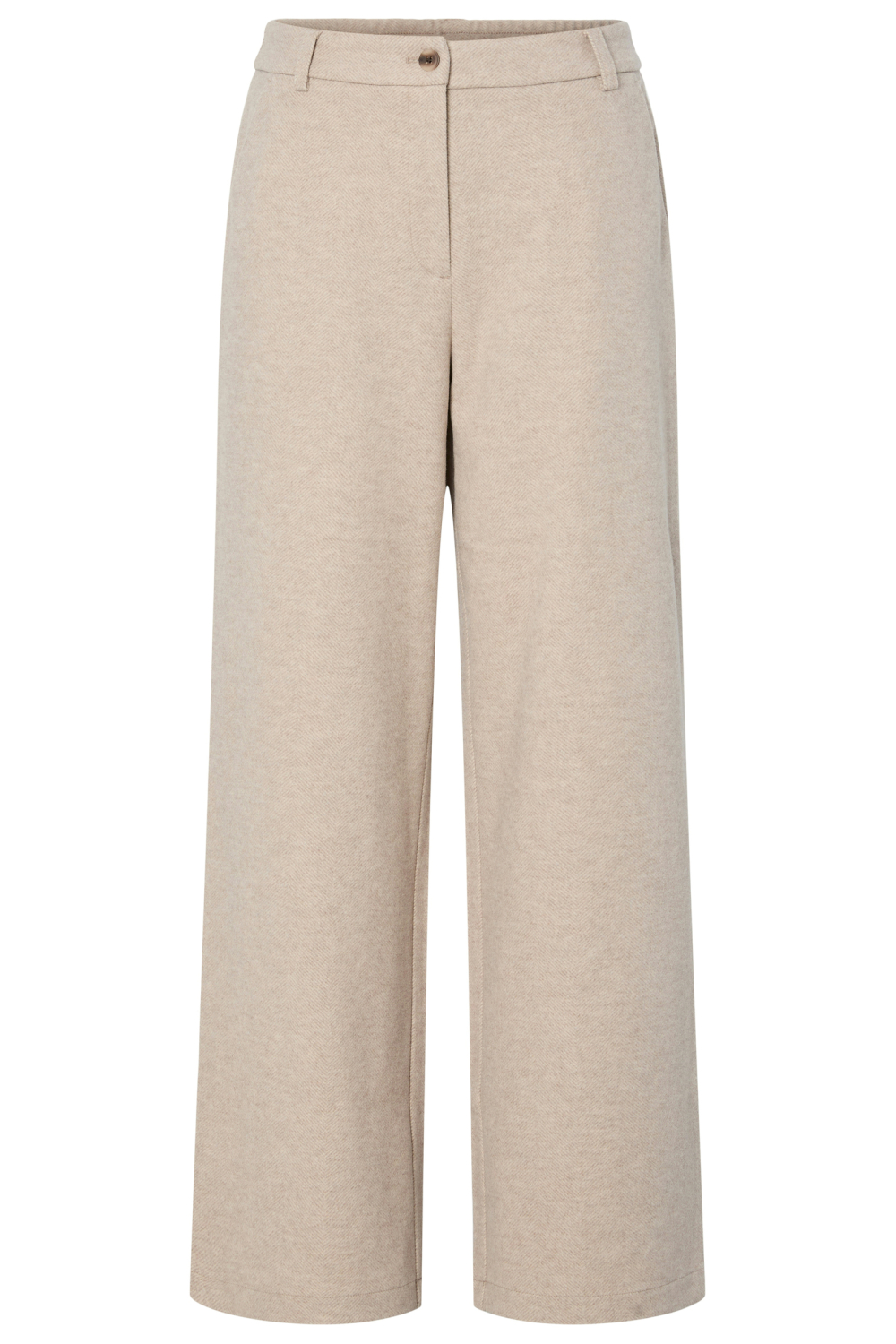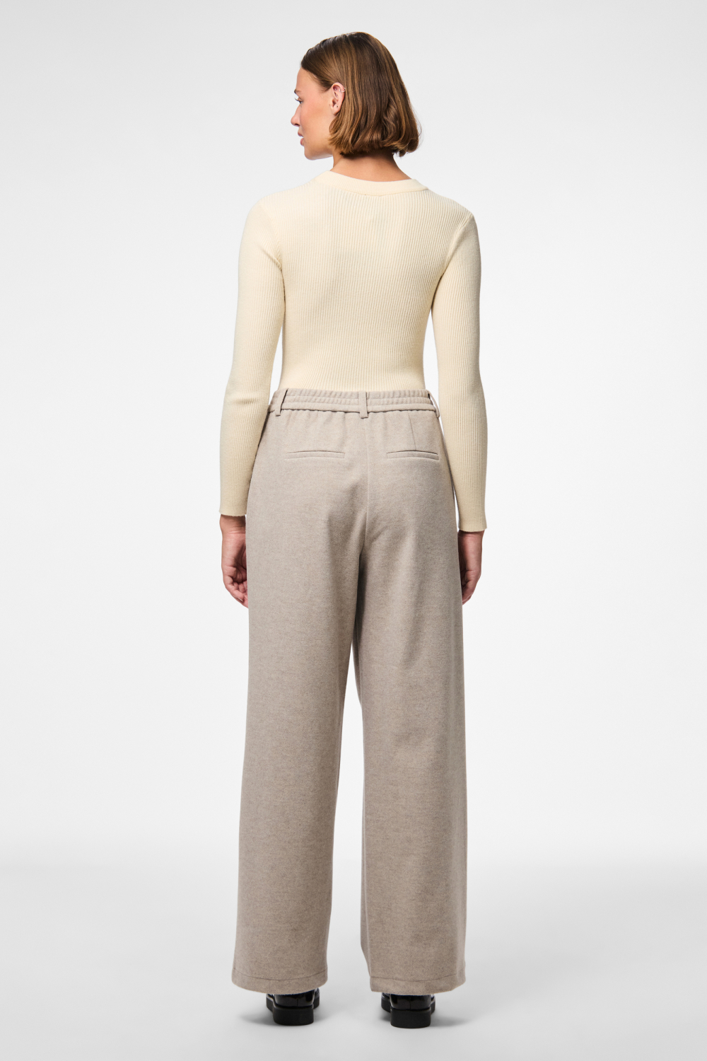 Deze elegante porpoise broek van Pieces is een veelzijdig stuk voor je wintergarderobe. De broek heeft een comfortabele wide leg pasvorm en is gemaakt van 80% gerecycled polyester, aangevuld met acryl en viscose. Het visgraatpatroon geeft een subtiele textuur, terwijl de steekzakken praktisch zijn voor dagelijks gebruik. De high waist taille en de knoop- en ritssluiting zorgen voor een aansluitende en stijlvolle look.