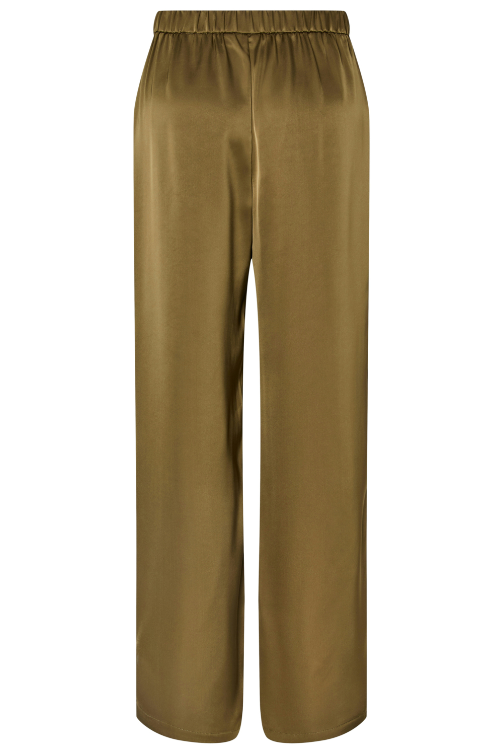 Deze elegante military olive broek van Pieces is een stijlvolle keuze voor de moderne vrouw. De wide leg pasvorm geeft je een modieuze uitstraling, terwijl de elastische boord voor extra comfort zorgt. Gemaakt van glanzend polyester, straalt deze broek verfijning uit en is daarbij onderhoudsvriendelijk. De diepe kleur maakt het een veelzijdig kledingstuk dat eenvoudig in je herfstgarderobe past. Ideaal voor zowel casual als stijlvolle gelegenheden.