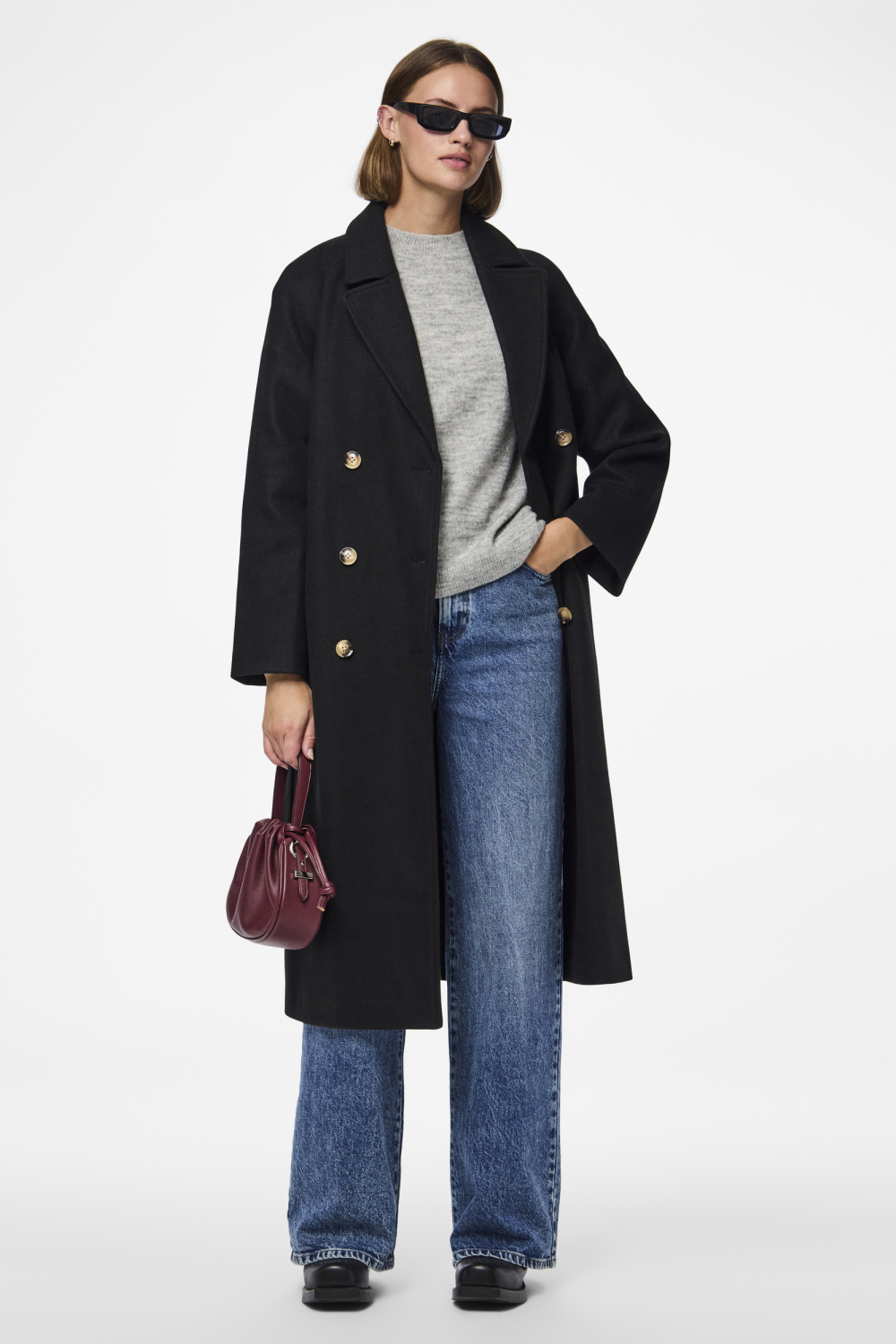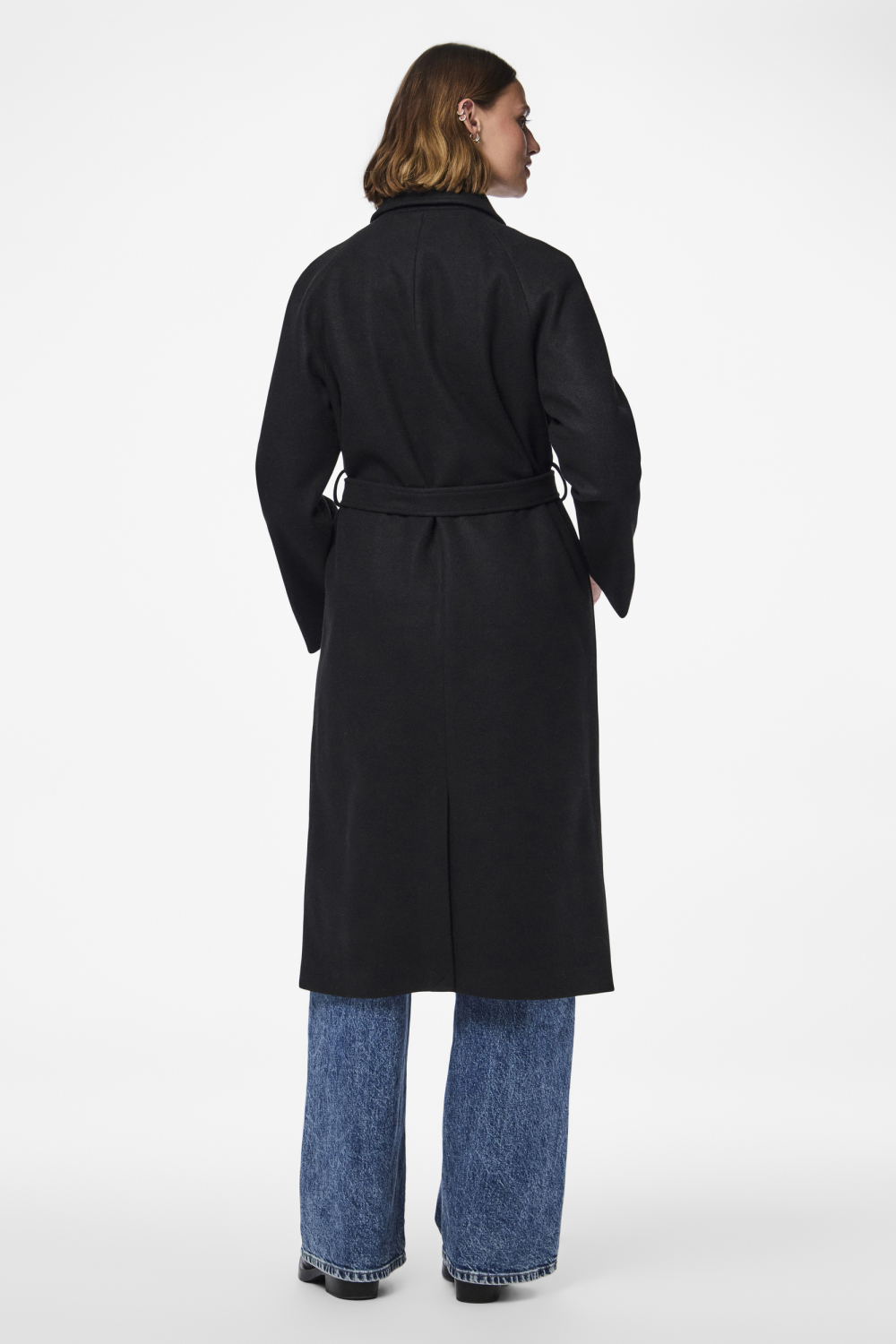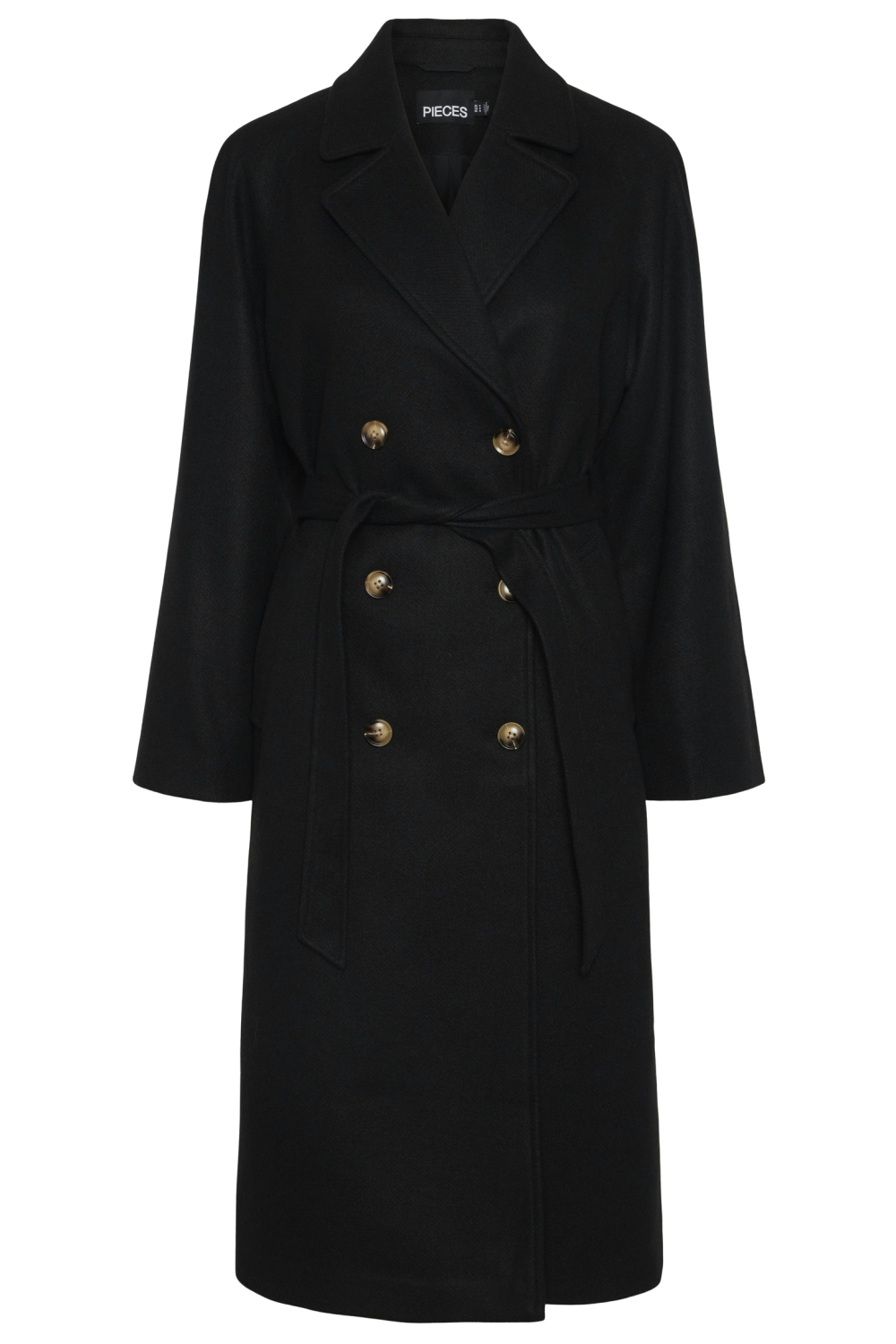 Bekijk ook de subtiele, maar opvallende steekzakken die niet alleen praktisch zijn, maar ook bijdragen aan het stijlvolle ontwerp. Het zwarte kleurenschema zorgt ervoor dat deze jas moeiteloos te combineren is met diverse outfits. Draag het over een jeans en trui voor een casual look, of combineer het met een rok en blouse voor een meer formele uitstraling. De Pieces jas biedt de ultieme mix van stijl en functionaliteit voor de moderne vrouw die graag veelzijdigheid in haar garderobe heeft.