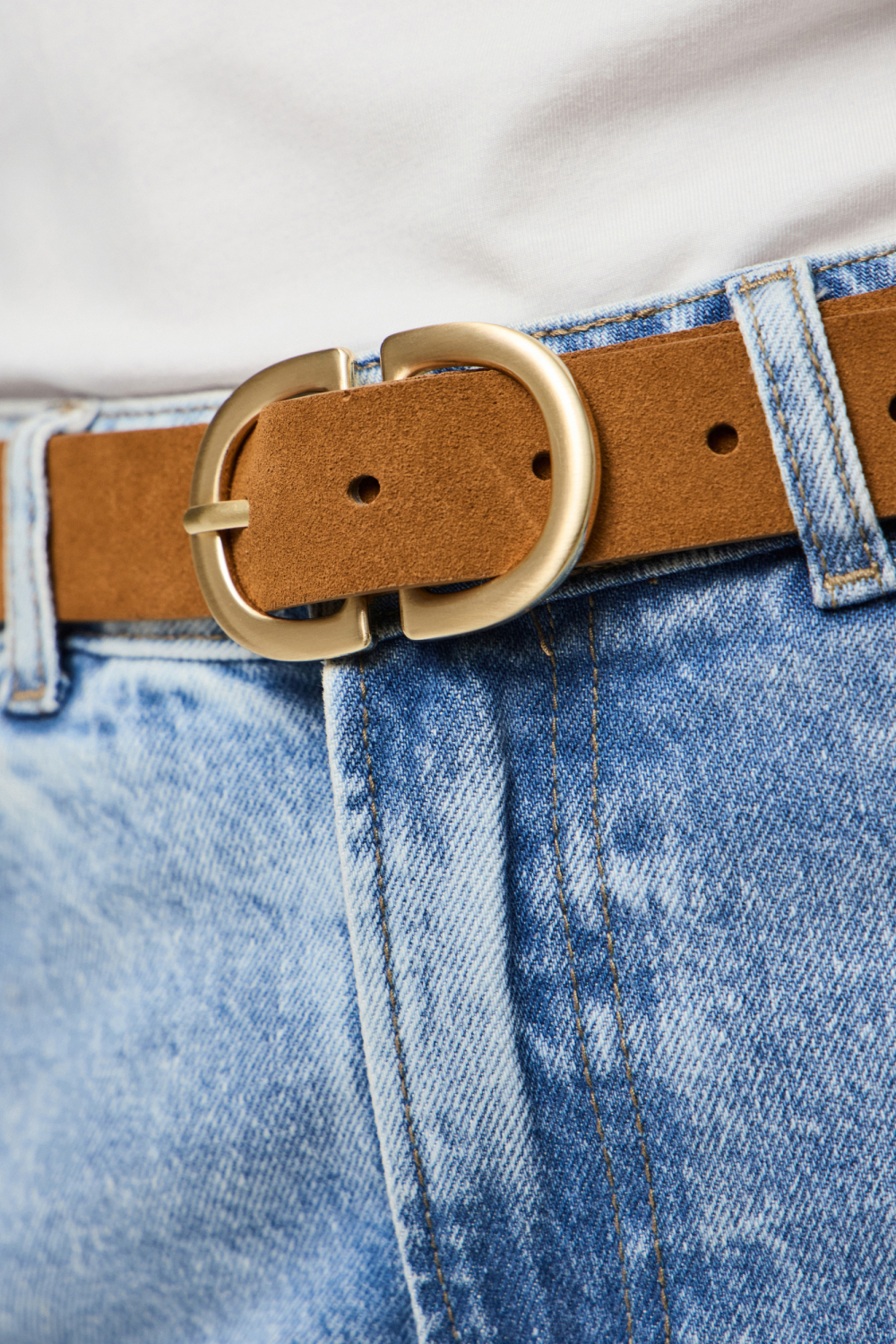 Deze cognac riem van Pieces is een stijlvolle toevoeging aan je accessoires. Gemaakt van 100% suède, biedt deze riem een klassieke uitstraling met een zachte, luxueuze textuur. De regular pasvorm zorgt ervoor dat de riem comfortabel om je taille zit. De subtiele suedine afwerking geeft de riem een levendige dimensie die perfect past bij zowel casual als meer geklede outfits. Met een stevige gespsluiting kan je hem makkelijk aanpassen aan je gewenste pasvorm. De Pieces riem is ideaal voor dagelijks gebruik en voegt een stijlvolle touch toe aan je outfit. Combineer hem met een jeans voor een casual look of draag hem bij een nette broek voor een meer formele uitstraling. De tijdloze cognac kleur zorgt ervoor dat de riem goed te combineren is met verschillende kleuren en stijlen. Perfect voor het hele jaar door, is dit een must voor elke garderobe die veelzijdigheid en kwaliteit waardeert.