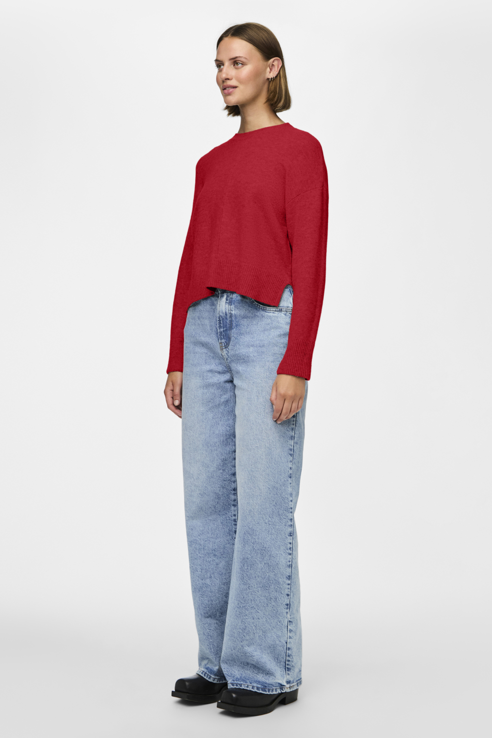 Deze prachtige knitwear trui van Pieces, in de opvallende kleur Goji Berry/Melange, is een veelzijdige aanvulling op je wintergarderobe. De regular fit van de trui zorgt voor een comfortabele pasvorm die geschikt is voor dagelijks gebruik. Met de lange mouwen en de warme stof blijf je behaaglijk tijdens de koudere maanden. De fijne, ronde hals geeft het kledingstuk een tijdloze uitstraling, waardoor het makkelijk te combineren is met diverse outfits. Of je nu een dag op kantoor doorbrengt of een middag met vrienden in de stad plant, deze trui is een uitstekende keuze. De normale lengte en subtiele ribbelstructuur aan de mouwuiteinden en zoom zorgen voor een verfijnde look. Combineer het met een nette broek voor een verzorgde uitstraling, of ga voor een casual look met je favoriete jeans. De duurzaamheid van het materiaal maakt deze trui niet alleen stijlvol, maar ook geschikt voor veelvuldig dragen. Voeg dit veelzijdige stuk van Pieces toe aan je collectie en geniet van zowel comfort als stijl.