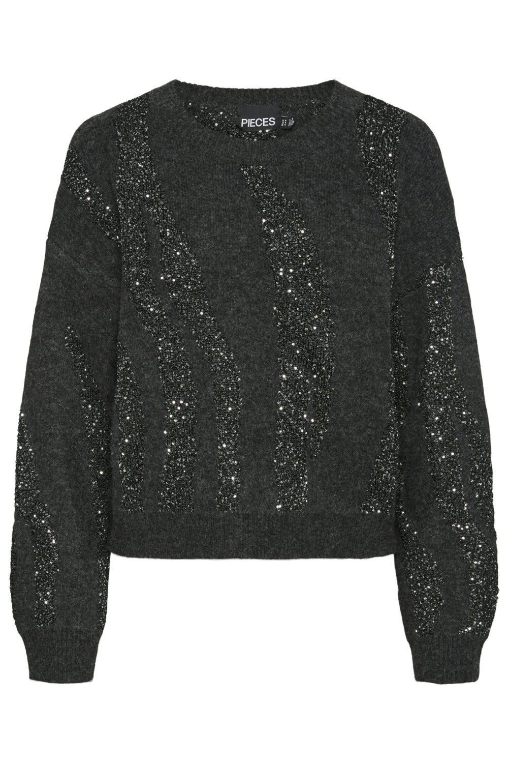 Pieces grijze dames trui | VooraanzichtPieces grijze dames trui | Achteraanzicht