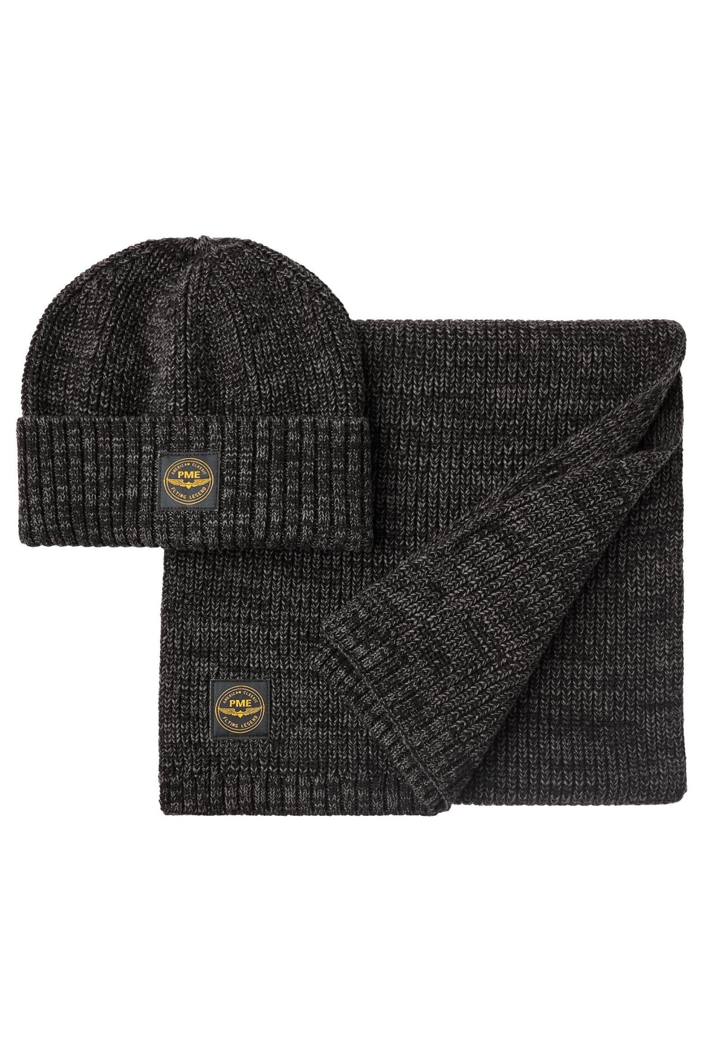 Deze gemêleerde knitwear accesoireset van PME Legend is een stijlvolle aanvulling voor de wintergarderobe van elke man. De set bestaat uit een comfortabele muts en sjaal, beide voorzien van het kenmerkende PME Legend logo. Gemaakt van een mix van 95% katoen en 5% elastaan, bieden deze accessoires zowel warmte als een flexibele pasvorm. De donkere kleurstelling maakt het gemakkelijk te combineren met diverse winterjassen, waardoor je altijd stijlvol voor de dag komt, ongeacht de gelegenheid.