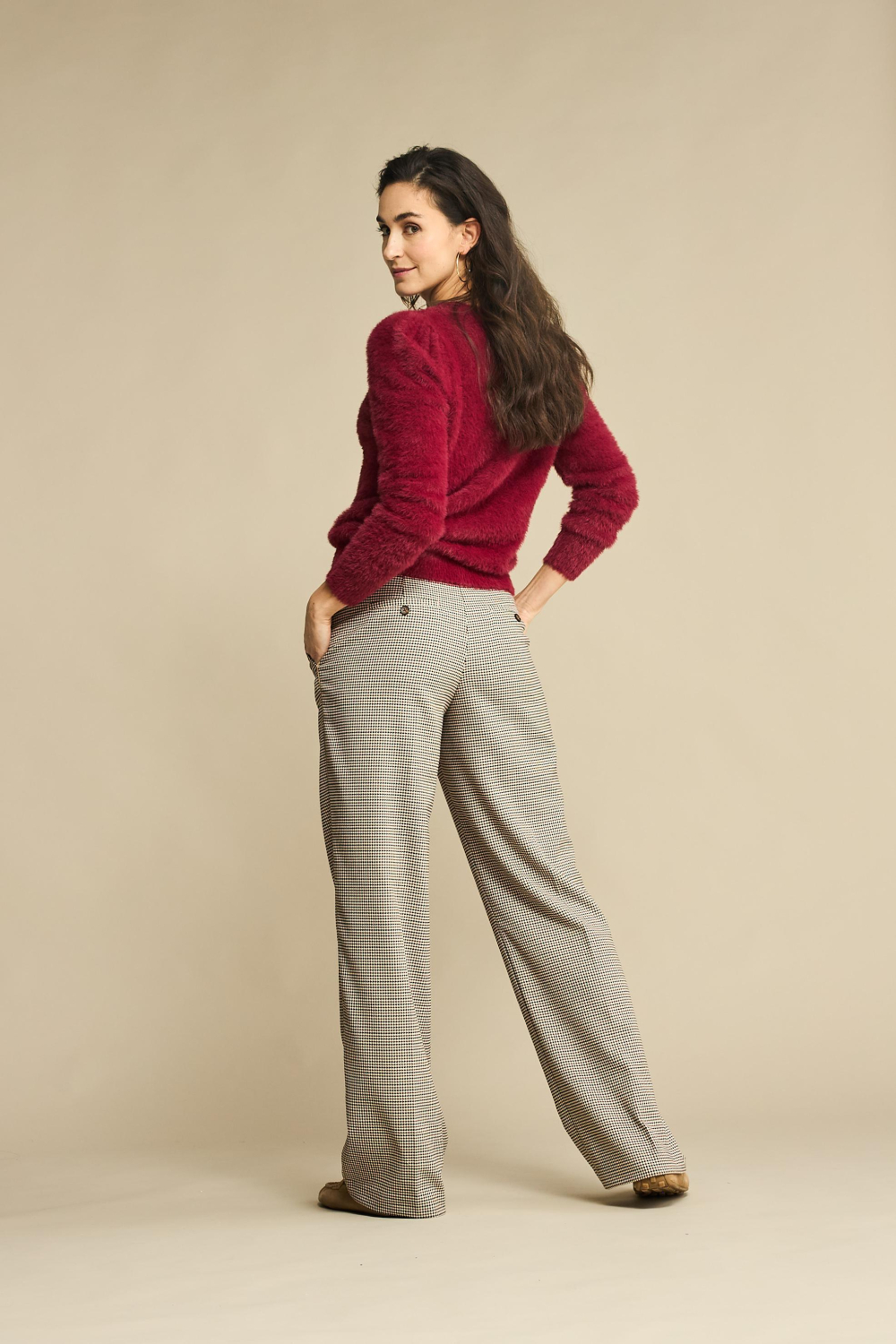 De broek beschikt over praktische steekzakken en is voorzien van een knoop- en ritssluiting voor een klassieke look. Het tijdloze blokpatroon geeft een elegante touch aan elke casual outfit, waardoor de broek perfect is voor zowel een dag op kantoor als een ontspannen bijeenkomst met vrienden. Draag hem met een effen top en laarzen voor een verfijnde herfstoutfit die je overal kunt dragen. Met deze Red Button broek kies je voor stijl en veelzijdigheid in één.