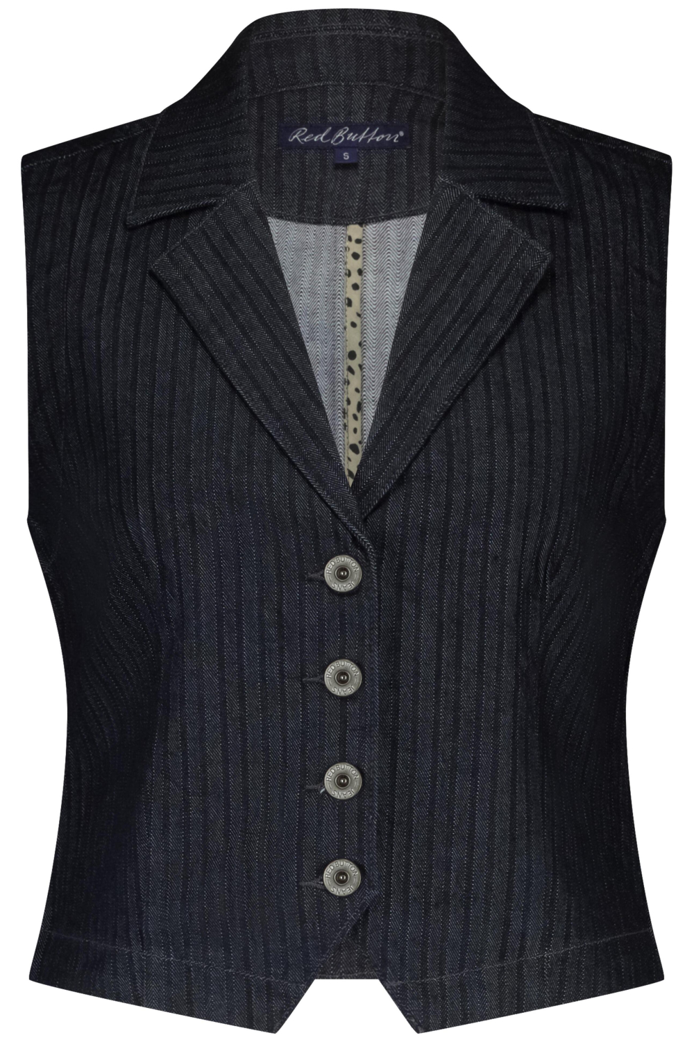 Dit casual damesgilet van Red Button is een verfijnde aanvulling op jouw wintercollectie. Gemaakt van 99% katoen en 1% elastan, biedt het een comfortabele fit die ook nog wat rek heeft. De regular pasvorm zorgt voor een ontspannen look, terwijl de revers kraag en de knoopsluiting een klassieke uitstraling geven. Het opvallende streep patroon voegt een speelse twist toe aan het geheel, waardoor het geschikt is voor zowel een dag op kantoor als een informele bijeenkomst.