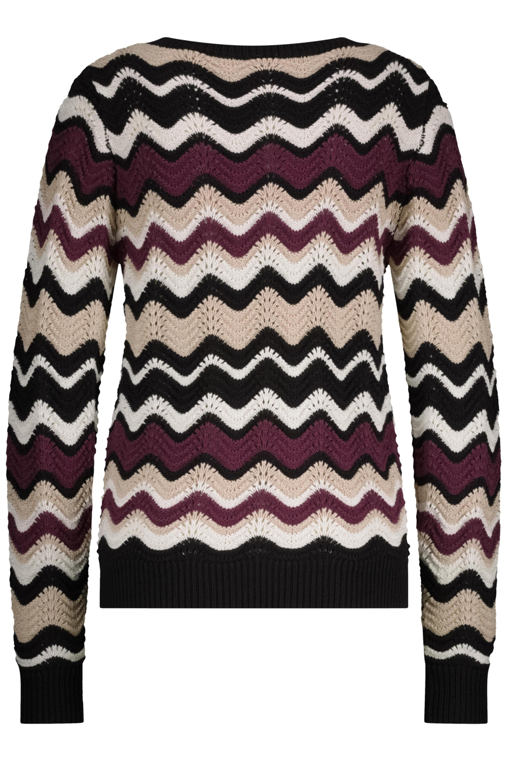 Deze Red Button damestrui laat je stijlvol de winter in gaan. Met een opvallend ajourpatroon in rijke tinten van zwart, beige, paars en wit, trekt deze trui de aandacht. De regular fit en de normale lengte maken dit kledingstuk comfortabel en veelzijdig. De lange mouwen en ronde hals voegen een klassieke touch toe, ideaal voor casual gelegenheden.