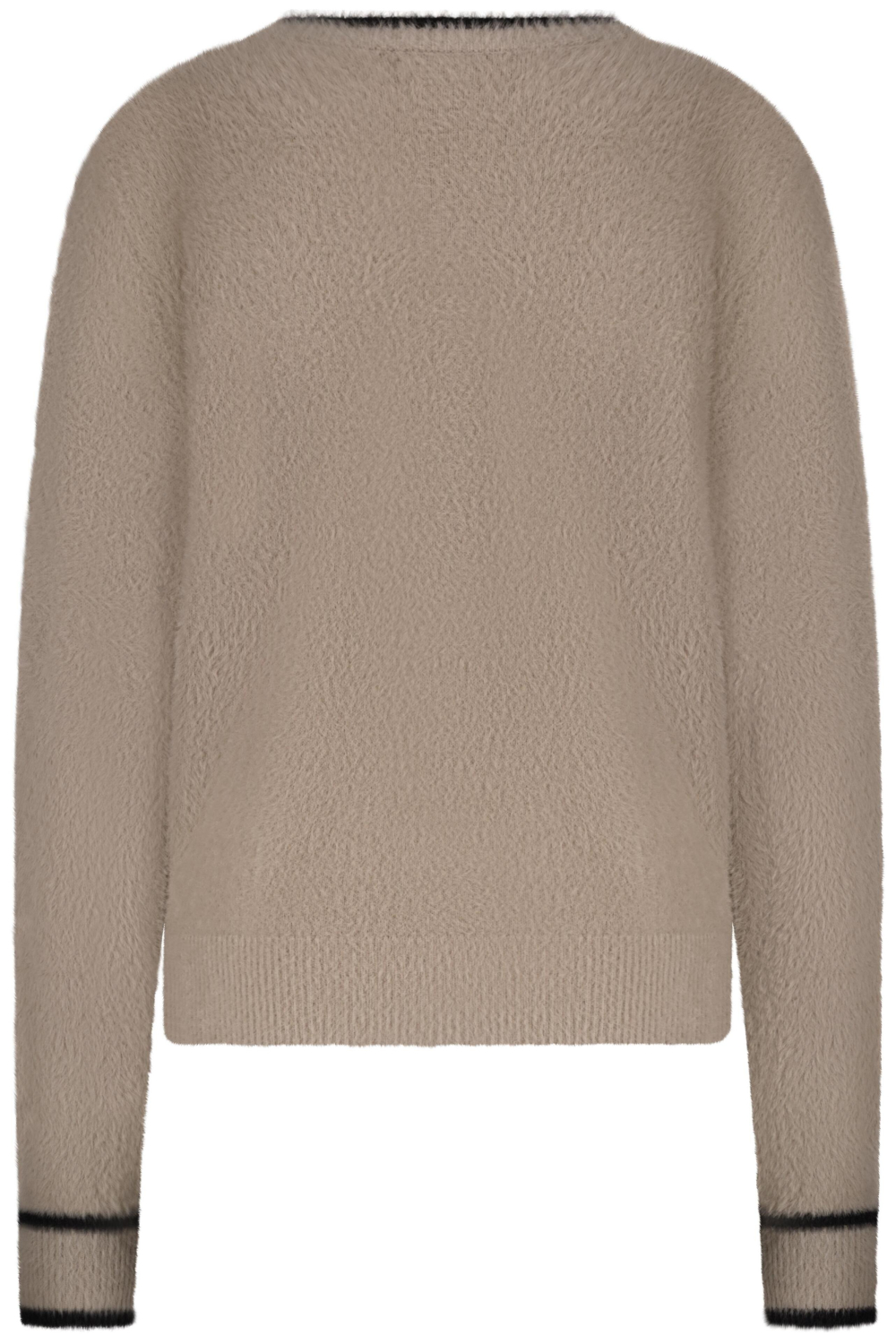 Deze beige damestrui van Red Button is een essentiële toevoeging aan je wintergarderobe. Met een regular fit en een zachte samenstelling van 72% nylon, 18% viscose en 10% polyester, biedt deze trui precies de comfort en warmte die je zoekt tijdens de koude dagen. De trui heeft een ronde hals en een subtiel structuurpatroon, wat zorgt voor een stijlvolle uitstraling zonder te overdrijven. De zwarte details langs de hals en mouwuiteinden geven een speelse touch aan het geheel.