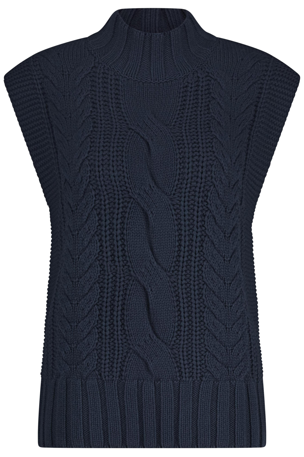 Deze damestrui van Red Button is een stijlvolle toevoeging aan je wintergarderobe. Gemaakt van een comfortabele mix van 60% katoen en 40% acryl, biedt deze navy trui een aangename warmte. De regular fit en het mouwloze ontwerp maken het een veelzijdig stuk dat je zowel op koudere als mildere dagen kunt dragen. Met de opvallende kabelpatroon en hoge hals krijgt de trui een elegante uitstraling die perfect is voor zowel casual als meer formele gelegenheden. Dankzij het tijdloze knitwear ontwerp is deze trui gemakkelijk te combineren met zowel broeken als rokken. De normale lengte en het klassieke ontwerp maken het ideaal voor een dag op kantoor of voor een gezellige avond uit. Of je nu kiest voor een gelaagde look of de trui op zichzelf draagt, hij biedt altijd comfort en stijl. Met deze trui van Red Button voeg je een praktische en modieuze keuze toe aan je collectie.