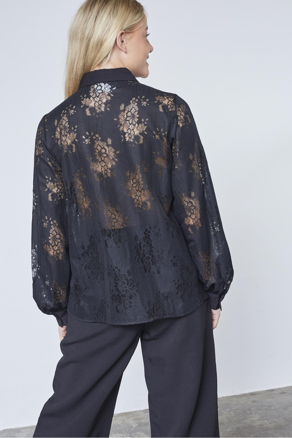Het fleurige kantpatroon maakt deze blouse ideaal voor zowel casual als formele settings. Draag hem tijdens een gezellige avond uit met vrienden of geef je werkoutfit een extra modieuze touch. De lange mouwen en de normale lengte bieden je voldoende dekking voor koudere dagen, terwijl het zwarte ontwerp veelzijdig en tijdloos blijft. Of je nu kiest voor een chique uitstraling of een relaxte look, deze blouse geeft jou de perfecte balans tussen stijl en comfort.