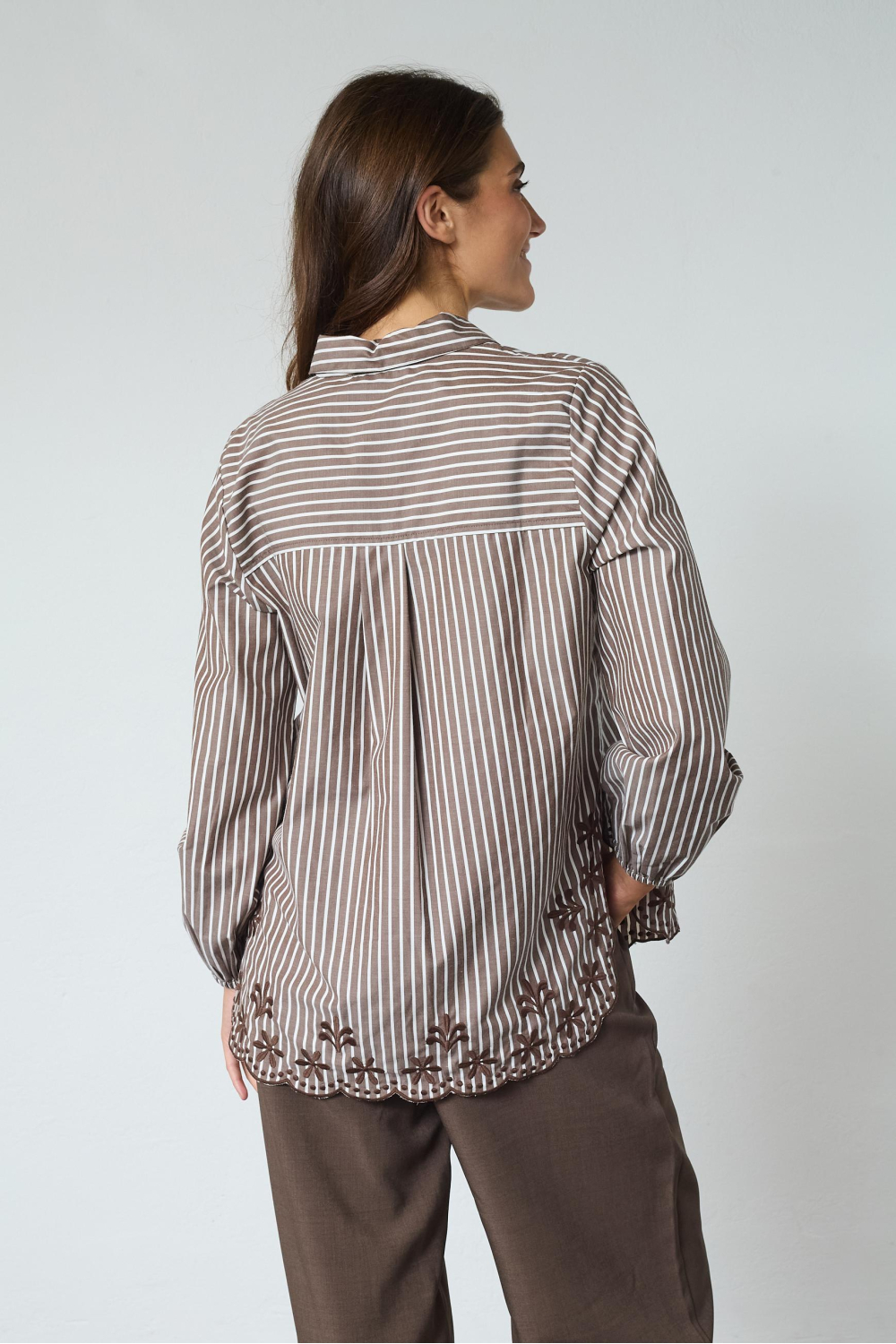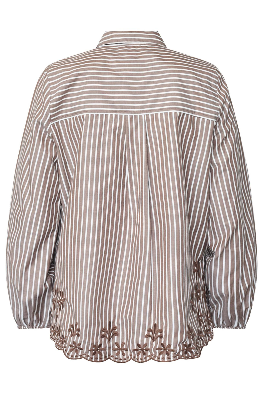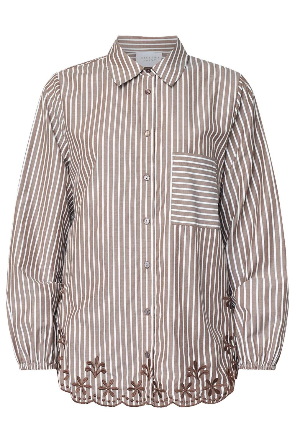 Deze stijlvolle blouse van SisterS point combineert casual elegantie met een verfijnde uitstraling. Gemaakt van een comfortabele mix van 75% polyester en 25% katoen, biedt deze blouse een aangenaam draagcomfort. De regular pasvorm en het klassieke gestreepte patroon maken het een veelzijdige keuze voor diverse gelegenheden. Met een subtiele puntkraag en elegante knoopsluiting past deze blouse perfect binnen een informele setting, maar kan hij ook makkelijk gekleed worden voor een meer formele gelegenheid. De blouse heeft prachtige lange mouwen en is voorzien van handige borstzakken voor een speelse touch. De geborduurde bloemen aan de onderkant van de blouse geven een uniek detail dat net dat beetje extra flair toevoegt aan je outfit. Ideaal voor een winterse dag op kantoor of een gezellige avond uit. Combineer deze blouse met een nette broek voor een elegante uitstraling, of ga voor een casual look met je favoriete jeans.