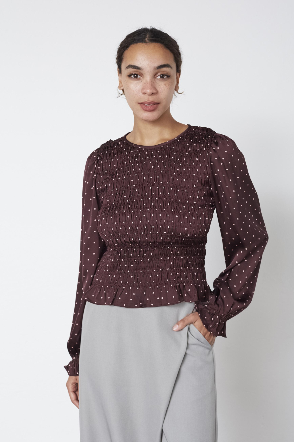 Deze casual blouse van SisterS point, onderdeel van de damescollectie, brengt een stijlvolle flair naar je wintergarderobe. De blouse heeft een subtiele stippenpatroon dat een speelse touch geeft aan het ontwerp. Met een elegante ronde hals en lange mouwen, is dit kledingstuk vervaardigd uit 100% polyester, wat zorgt voor een comfortabele pasvorm. De slim fit snit zorgt voor een eigentijdse en flatterende uitstraling. Dankzij de knoopsluiting aan de achterkant krijg je zowel comfort als een stijlvolle afwerking.