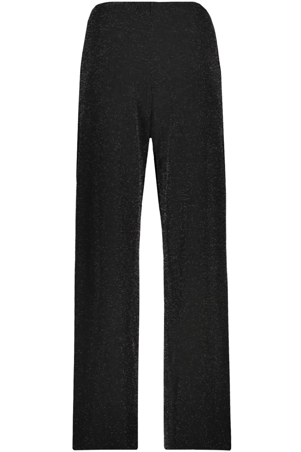 Wideleg broek met allover glitter patroon. Dit model heeft een hoge elastische boord.