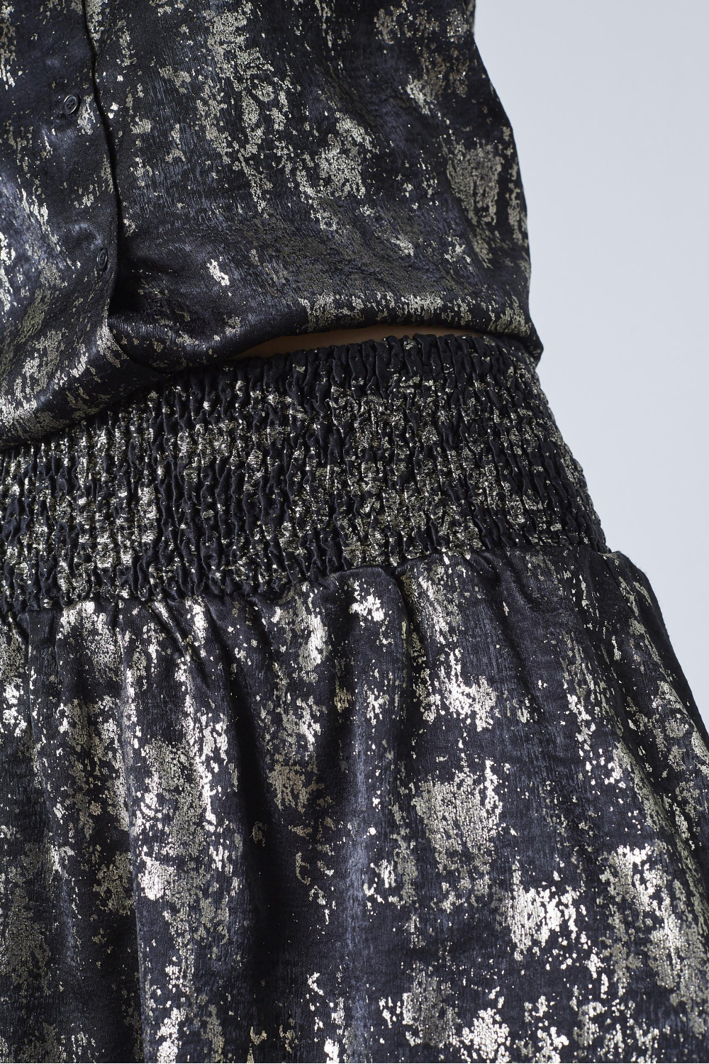 Deze glanzende rok van SisterS Point combineert moeiteloos stijl en comfort voor de moderne vrouw. Met zijn elastische boord en high waist design, biedt deze short skirt een flatterende regular pasvorm die perfect aansluit en toch bewegingsvrijheid geeft. De glanzende patronen creëren een sprankelend effect dat ideaal is voor winterse gelegenheden. Gemaakt van 100% polyester, voelt de stof aangenaam en licht aan op de huid, wat bijdraagt aan langdurig draagplezier. De kortere lengte en het stijlvolle ontwerp maken deze rok een uitstekende keuze voor zowel casual als feestelijke gelegenheden. Combineer gemakkelijk met een elegante blouse en enkellaarsjes voor een complete look die klaar is voor elke avond uit. Of je nu naar een winterfeest gaat of een avond in de stad doorbrengt, met deze rok van SisterS Point maak je een elegante indruk. Het veelzijdige ontwerp en de opvallende glansdetails zorgen ervoor dat je altijd in stijl voor de dag komt. Meer informatie: De totale lengte is 49 cm bij maat S.