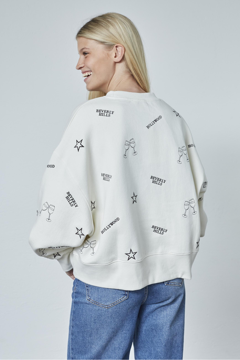 Deze casual sweater van SisterS point is een stijlvolle keuze voor de wintergarderobe. Gemaakt van een comfortabele mix van 60% katoen en 40% polyester, biedt deze sweater een heerlijk zachte feel. De oversized pasvorm zorgt voor een ontspannen uitstraling, ideaal voor een informele dag of een gezellige avond met vrienden. Dankzij de grafische prints met subtiele details als "Hollywood" en "Beverly Hills", voegt deze sweater een speels en eigentijds accent toe aan je outfit.