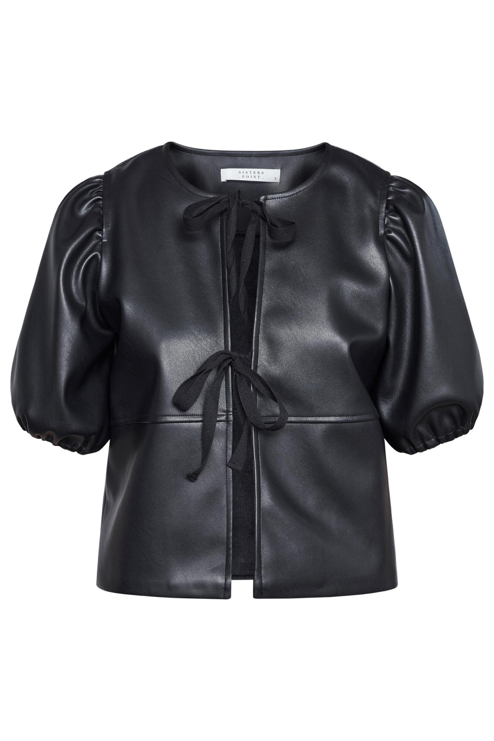 Dit stijlvolle zwarte t shirt van SisterS point is een opvallende toevoeging aan je wintergarderobe. Met een moderne regular pasvorm biedt het imitatieleer niet alleen duurzaamheid, maar ook een trendy uitstraling. Het t shirt heeft een ronde hals en korte mouwen met een lichte pof, wat een speelse touch geeft aan het geheel. Het strikkoord aan de voorzijde zorgt voor een unieke sluiting, perfect voor een casual look met een vleugje elegantie. Gemaakt van 100% PU, is deze top ideaal voor verschillende gelegenheden, van een avondje uit tot een informele afspraak. Je kunt het eenvoudig combineren met een strakke jeans of een rok voor een veelzijdige outfit. Het unieke design en de hoogwaardige afwerking maken het een echte blikvanger in elke garderobe. Of je nu een opvallend statement wilt maken of gewoon wilt genieten van een comfortabele en stijlvolle look, dit model biedt het allemaal.