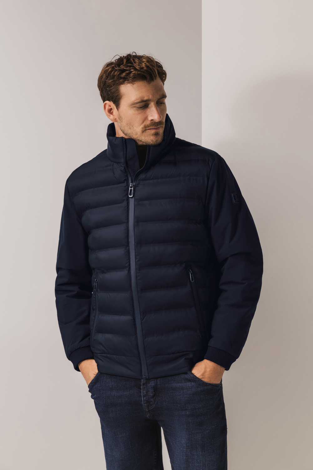 Deze navy jas van State of Art biedt een perfecte balans tussen stijl en comfort voor heren. Dankzij de regular fit en de lange mouwlengte, zit hij niet alleen comfortabel, maar flatteert hij ook veel lichaamsvormen. De jas heeft een praktische high neck, wat je extra warmte biedt tijdens de koudere wintermaanden. Aan de voorkant vind je subtiele ritszakken, ideaal voor het veilig opbergen van kleine items. De ritssluiting en het gewatteerde polyester zorgen ervoor dat je warm blijft zonder stijl in te leveren. De jas is gemaakt van 100% polyester en heeft een casual stijl die moeiteloos te combineren is met verschillende outfits. De normale lengte maakt hem veelzijdig voor zowel dagelijkse activiteiten als casual uitjes. Combineer hem met een jeans voor een ontspannen look of draag hem over een nettere outfit voor meer zakelijke gelegenheden. Dit kledingstuk is een betrouwbare keuze voor de winter, waardoor je met vertrouwen de deur uit kan gaan, ongeacht de temperatuur. Meer informatie: De totale lengte is 68 cm bij maat M.