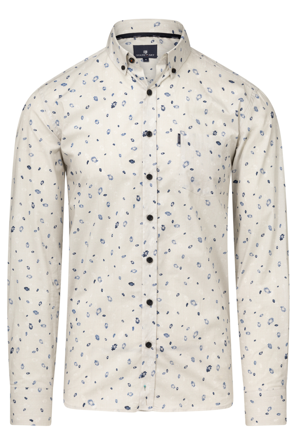 Dit grafische overhemd van State of Art is een veelzijdige keuze voor jouw wintergarderobe. De zachte, katoenen stof met een vleugje elastan zorgt voor een comfortabele pasvorm die perfect is voor dagelijks gebruik. Het overhemd heeft een regular fit en is voorzien van een subtiele button-down kraag en zwarte knopen die het geheel een moderne uitstraling geven. Op de borst pronkt een praktische borstzak, die zowel functioneel als stijlvol is. De blouse valt normaal op de heupen, ideaal om zowel in als buiten je broek te dragen. Dankzij het speelse patroon in blauw en wit kun je dit State of Art overhemd makkelijk combineren met een jeans voor een casual look, of met een nette pantalon voor een meer formele gelegenheid. Of je nu een dag op kantoor hebt of een weekenduitje plant, dit overhemd past bij elke situatie. De lange mouwen en het winterse karakter maken het een perfecte keuze voor de koude maanden. Voeg een tijdloze klasse toe aan jouw outfits met dit stijlvolle overhemd.