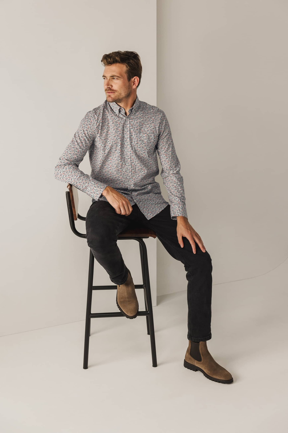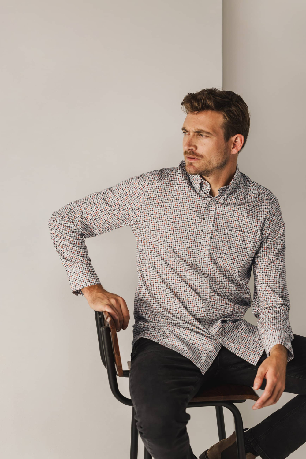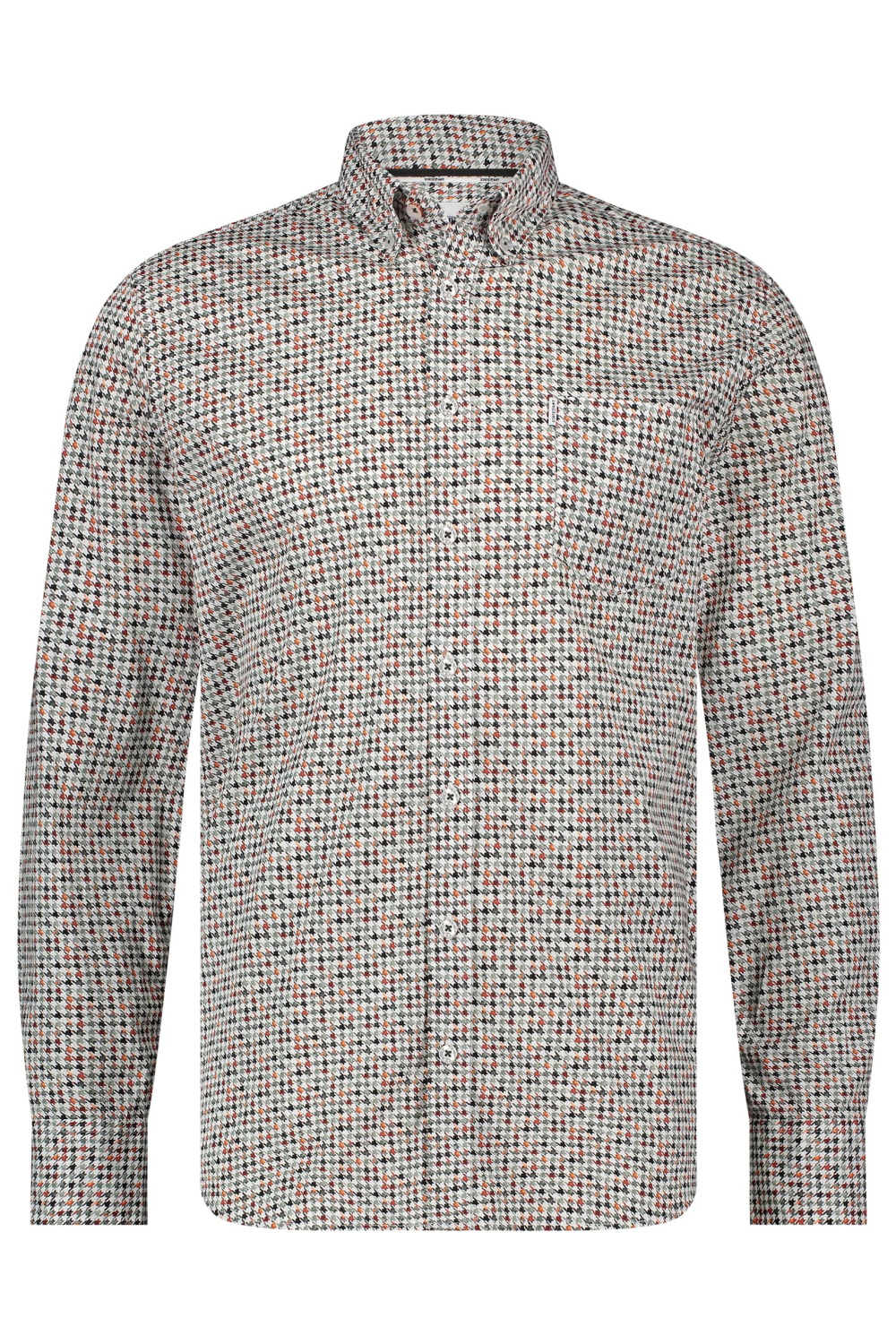 Dit casual overhemd van State of Art is een stijlvolle keuze voor iedere man. Het wordt gekenmerkt door een grafisch patroon in subtiele kleuren, wat een unieke en moderne uitstraling geeft. Gemaakt van 97% katoen met 3% elastaan, biedt het een comfortabele pasvorm zonder concessies te doen aan stijl. De button-down kraag en de lange mouwen maken het geschikt voor diverse gelegenheden, van een ontspannen avond uit tot een informele werkdag.