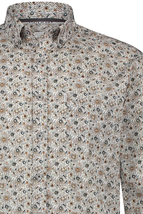 overhemd van State of Art met lange mouwen en een button downkraag. Dit model heeft een allover grafisch patroon en sluit met knopen. Op borsthoogte is een steekzak geplaatst.