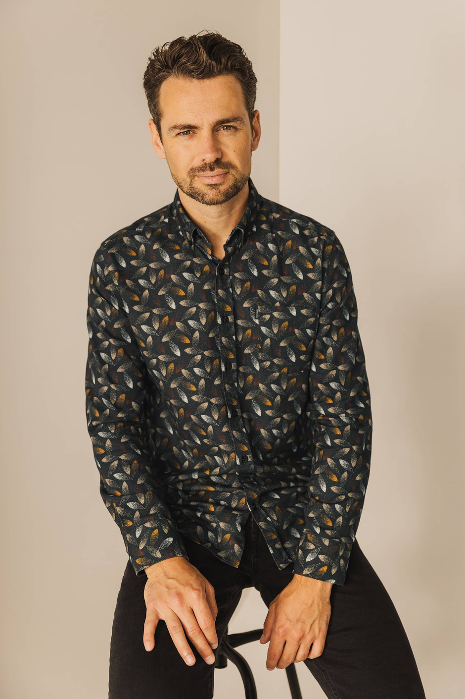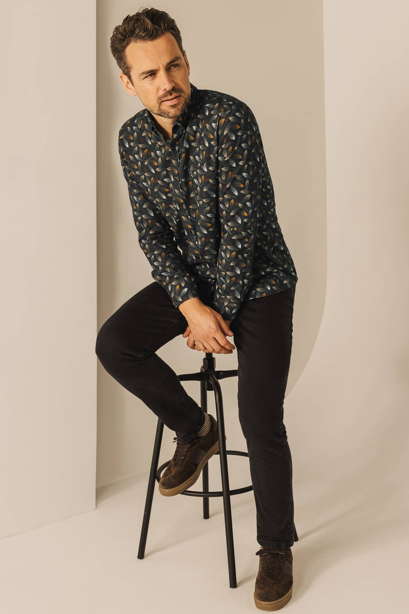 overhemd van State of Art met lange mouwen en een button downkraag. Dit model heeft een allover grafisch patroon en sluit met knopen. Op borsthoogte is een steekzak geplaatst.
