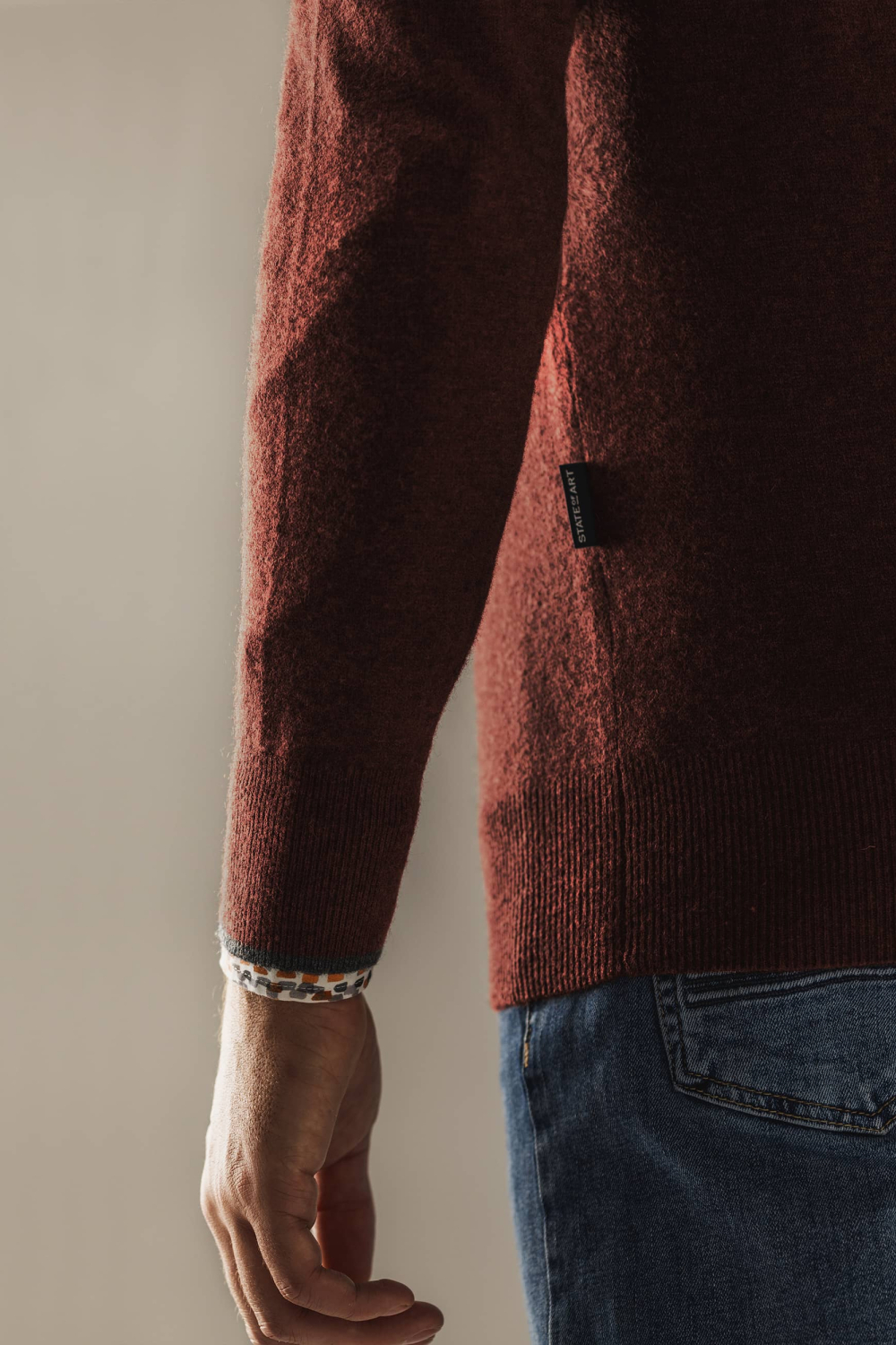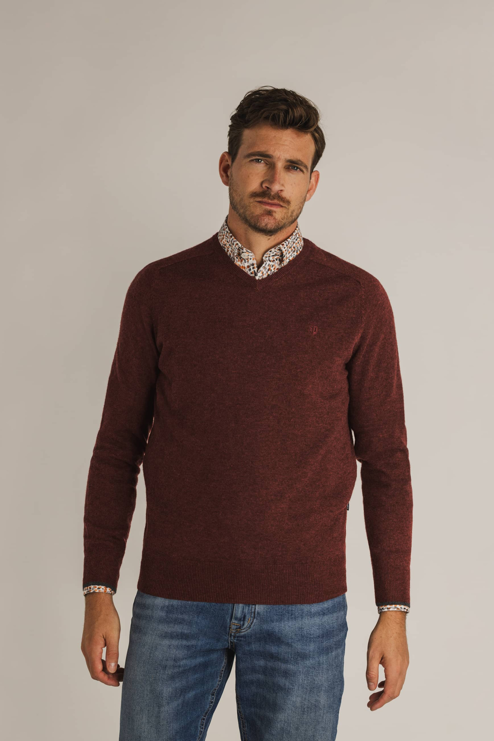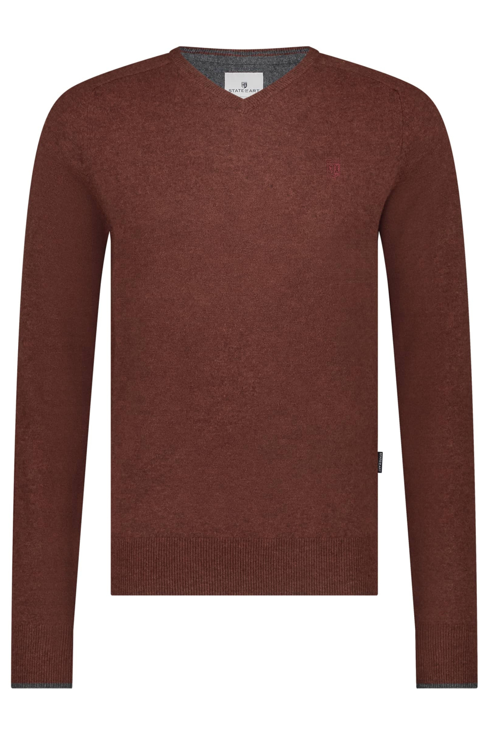 Deze gemêleerde trui van State of Art combineert stijl en comfort. Het is een regular fit, ontworpen voor heren die hun garderobe met veelzijdige knitwear willen uitbreiden. De warme bordeauxrode kleur en de subtiele V-hals geven deze trui een tijdloze uitstraling. Gemaakt van 100% Merino wol, biedt het een zachte en luxueuze ervaring die ideaal is voor de wintermaanden.