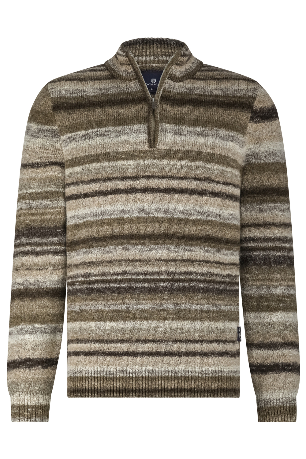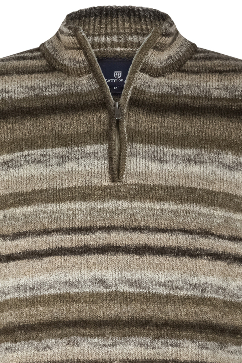 Deze stijlvolle trui van State of Art, een must-have voor elke herengarderobe, heeft een regular fit en biedt ultiem comfort voor de winter. De prachtige streepdetails in natuurlijke tinten geven de trui een eigentijdse look, terwijl de hoogwaardige knitwear constructie zorgt voor warmte op koude dagen. De hoge hals en handige rits maken het gemakkelijk om de pasvorm naar wens aan te passen en bieden extra bescherming tegen de elementen.