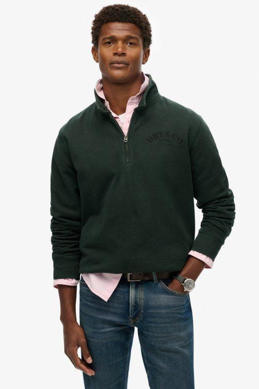 Deze casual sweater van Superdry, in de kleur Forest Green, is een veelzijdige aanwinst voor je wintergarderobe. De sweater heeft een comfortabele regular fit en is gemaakt van 100% katoen, waardoor deze heerlijk zacht aanvoelt. De puntkraag en ritssluiting geven het een moderne uitstraling, terwijl de subtiele logo-opdruk op de borst een trendy touch toevoegt. Deze sweater is perfect om te dragen tijdens een ontspannen weekend of een informele bijeenkomst met vrienden. De normale lengte en lange mouwen maken deze Superdry sweater bijzonder geschikt voor koude dagen. Hij is eenvoudig te combineren met een spijkerbroek voor een moeiteloze look. Of je nu een wandeling in het park maakt of een dagje uit plant, deze sweater biedt de perfecte balans tussen stijl en comfort. Voeg dit veelzijdige kledingstuk toe aan je collectie en geniet van een tijdloze look die altijd in de mode is.