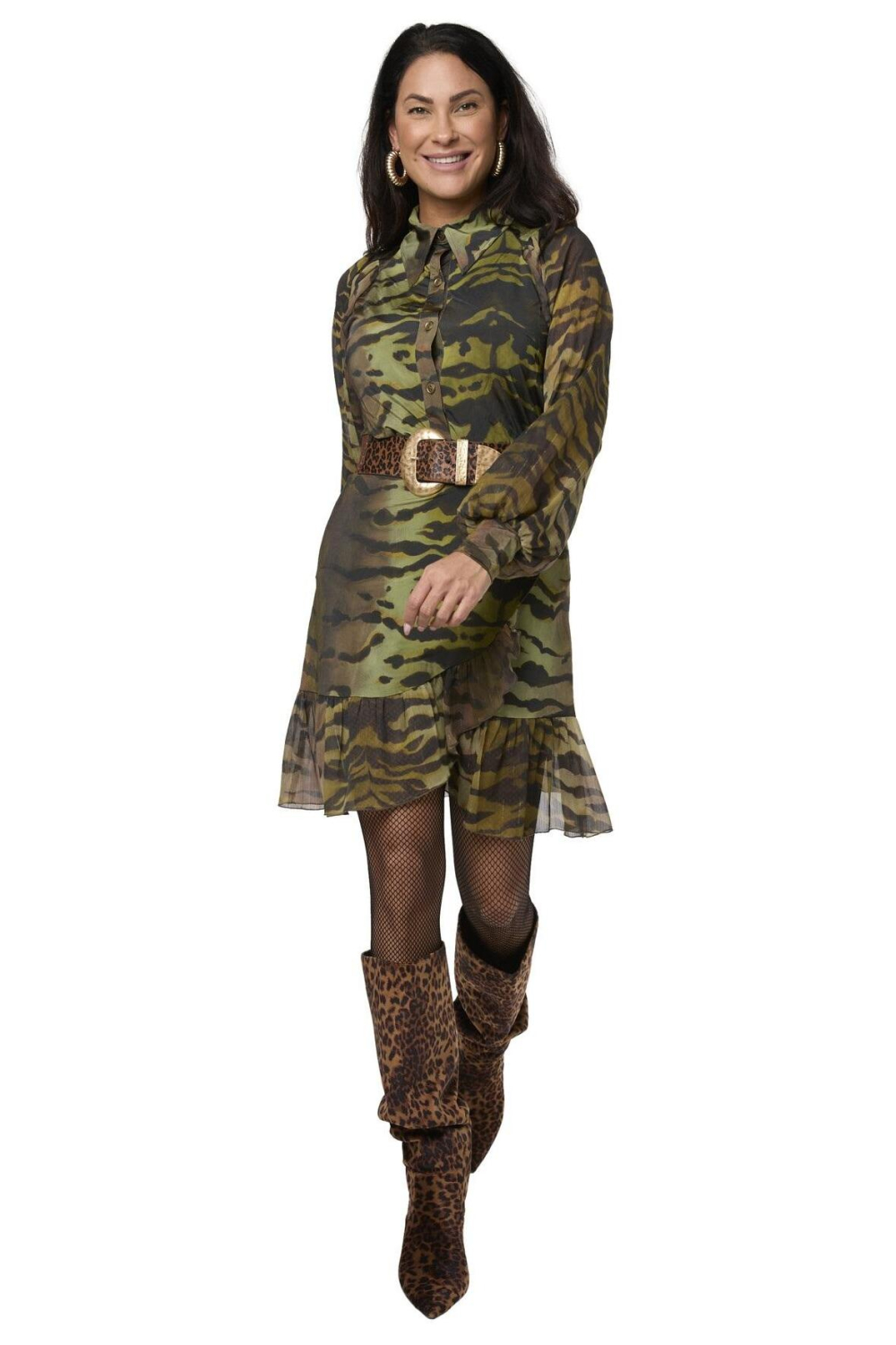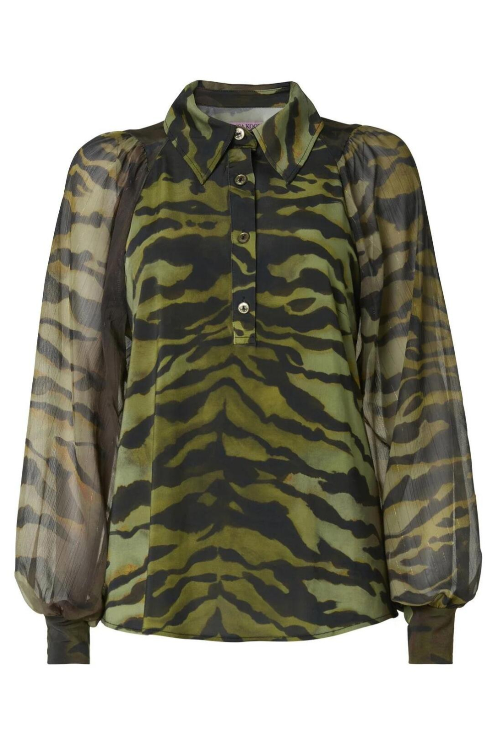 De schitterende blouse van Tessa Koops is een opvallende toevoeging aan je garderobe. Met zijn stijlvolle camouflageprint in gedempte groentinten, biedt het een bijzondere look die zowel modieus als casual is. De blouse heeft een regular pasvorm en is gemaakt van hoogwaardige 91% viscose en 9% elastan, wat zorgt voor een comfortabele en soepele draagervaring. De puntkraag en knoopsluiting geven de blouse een verfijnde uitstraling. Perfect om te dragen bij vele gelegenheden, van een dag op kantoor tot een gezellige avond uit.