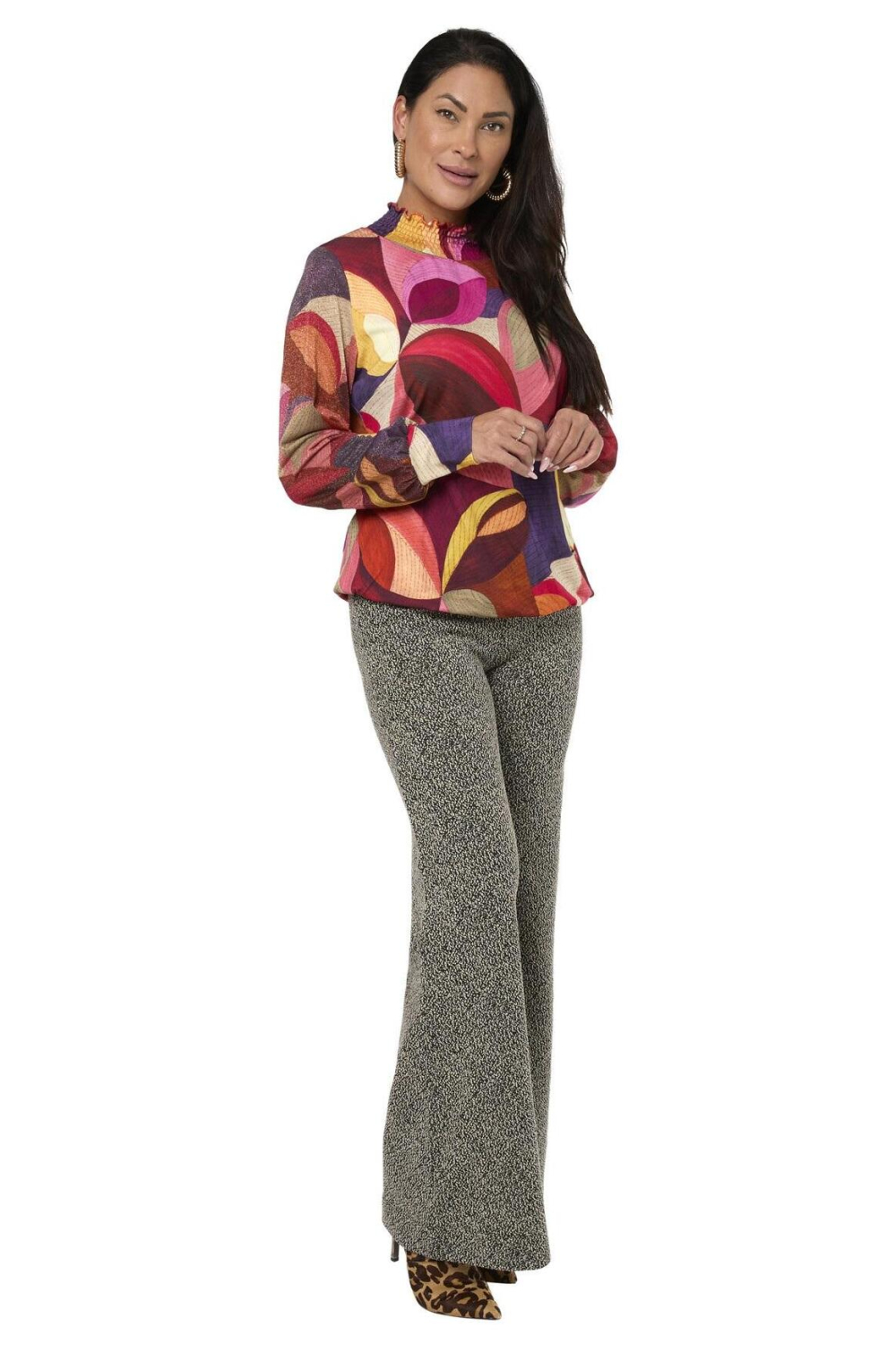 Het glitterpatroon van de broek maakt het eenvoudig om een statement te maken, zonder dat je daarvoor veel extra’s hoeft toe te voegen. Combineer hem met een effen blouse voor een verfijnde look, of kies voor een opvallende top als je wat meer kleur wilt brengen. Dankzij de veelzijdigheid en het tijdloze design past deze broek naadloos bij diverse stijlen en gelegenheden. De flared pasvorm geeft een retro touch aan je outfit, waardoor je moeiteloos opvalt. Deze broek van Tessa Koops is een perfecte keuze voor wie houdt van stijlvolle en comfortabele kleding.