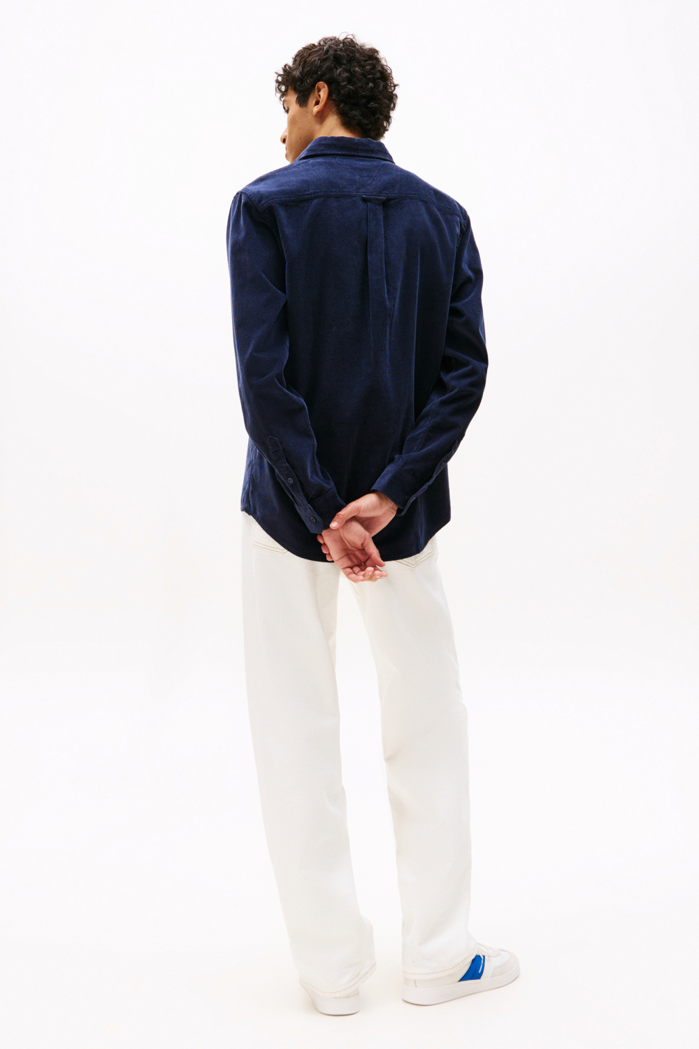 Dit casual navy riboverhemd van Tommy Jeans is de perfecte aanvulling op je wintergarderobe. De rijke donkerblauwe kleur en het ribpatroon zorgen voor een moderne, maar tijdloze uitstraling. Dankzij de regular fit pasvorm zit dit overhemd comfortabel zonder in te boeten op stijl. De button-down kraag en knoopsluiting geven het een klassieke twist. Met de praktische borstzakken heb je altijd plek voor kleine essentials. Dit overhemd is vervaardigd uit 100% katoen, waardoor het zacht aanvoelt en ideaal is voor koude dagen.
